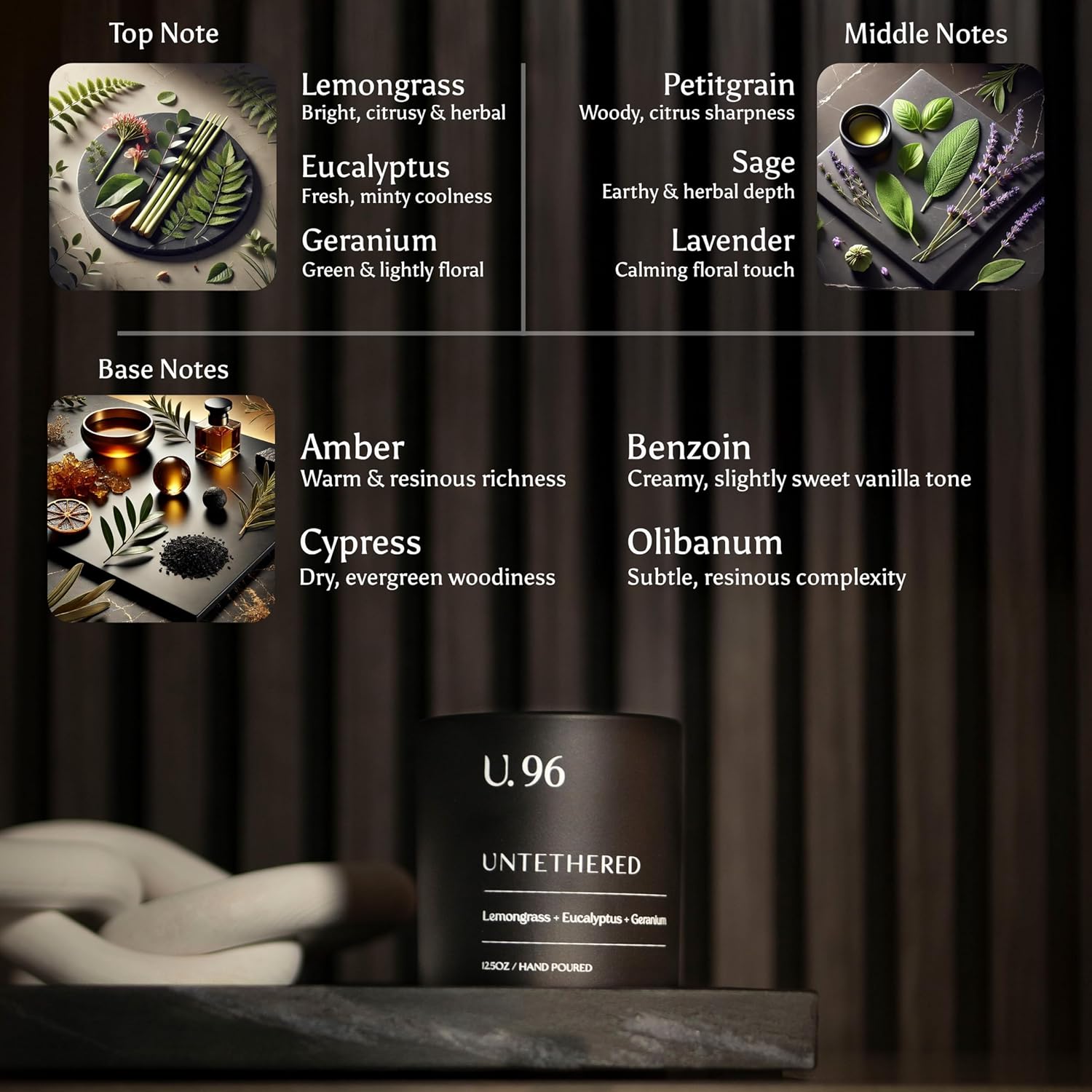 U.96 Luxury Scented Candle – Lemongrass, Eucalyptus & Amber | Hand-Poured in USA w/ 100% Natural Coconut & Apricot Wax | Double Wick, Long-Lasting Aromatherapy Candle for Home, Gift, & Rest (12.5 oz)