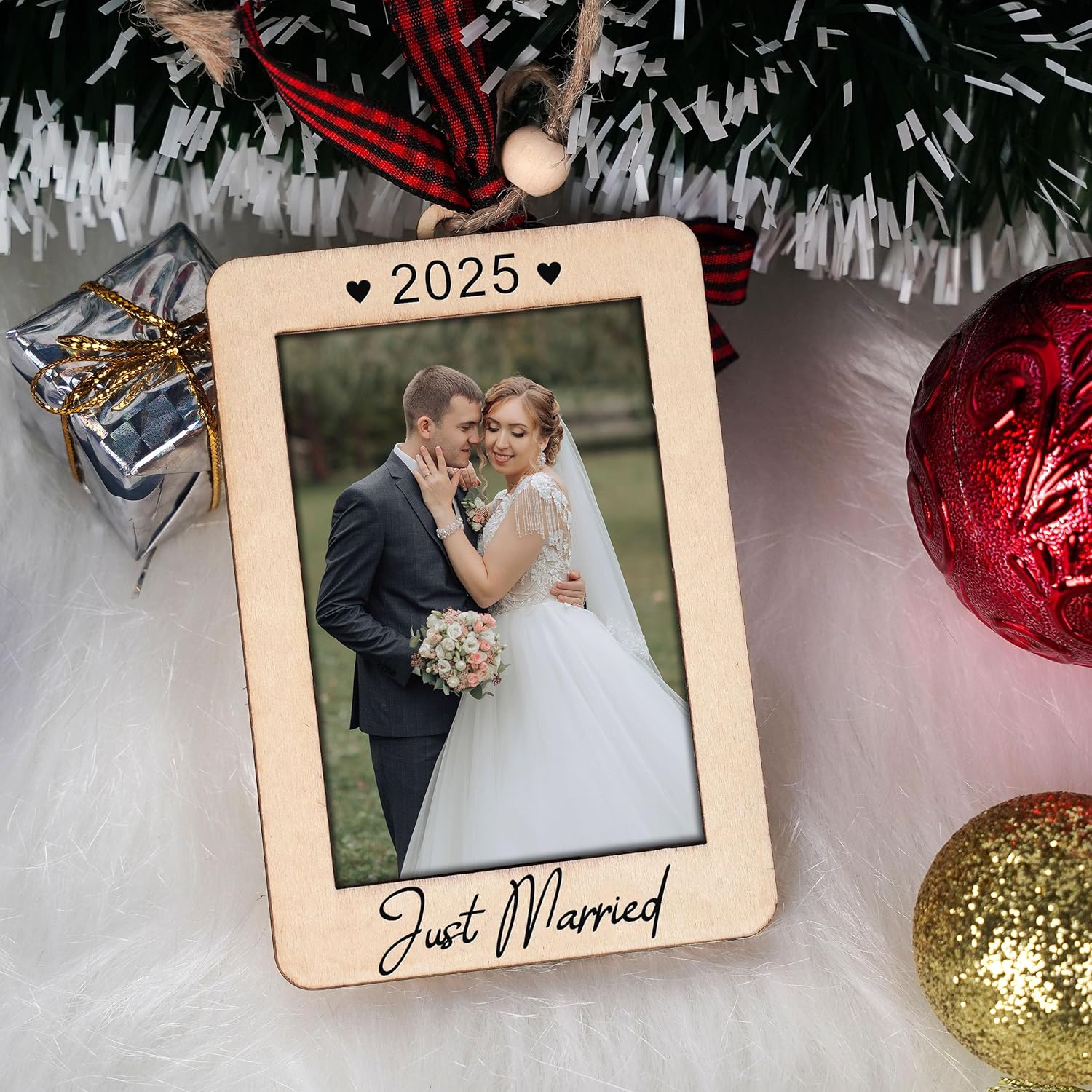 - Memorable Just Married Ornament 2025 – Celebrate the joy of marriage with this just married ornament 2025, a beautifully crafted wooden keepsake designed as both a just married picture ornament and ornament photo frame. Add your favorite wedding photo to create a lasting reminder of your special day, perfect for displaying on the Christmas tree year after year.
