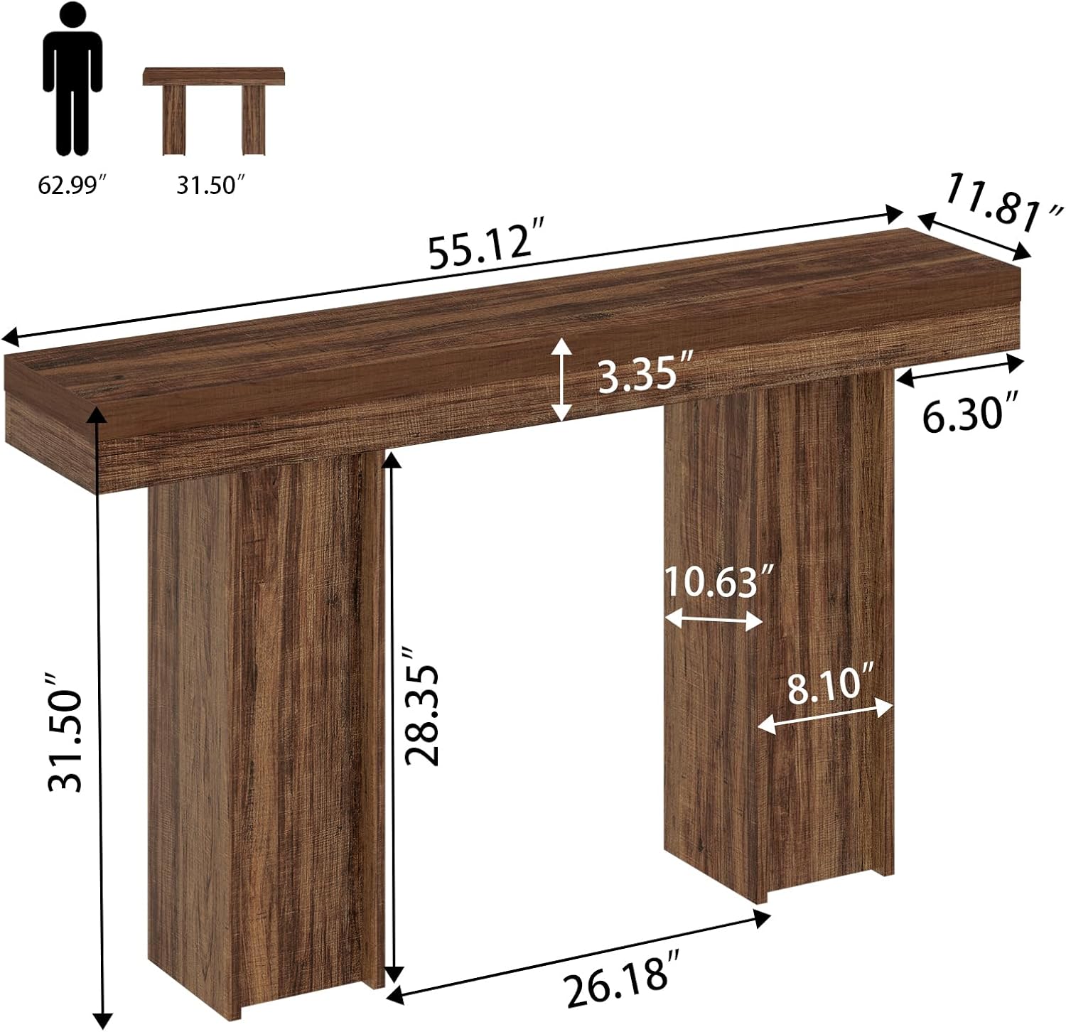 - ăDurable & Stable ConstructionăCrafted from high-quality MDF engineered wood, this console table is built to last, handling daily use with ease. Its wood-like finish adds authenticity while ensuring solid, long-lasting construction.