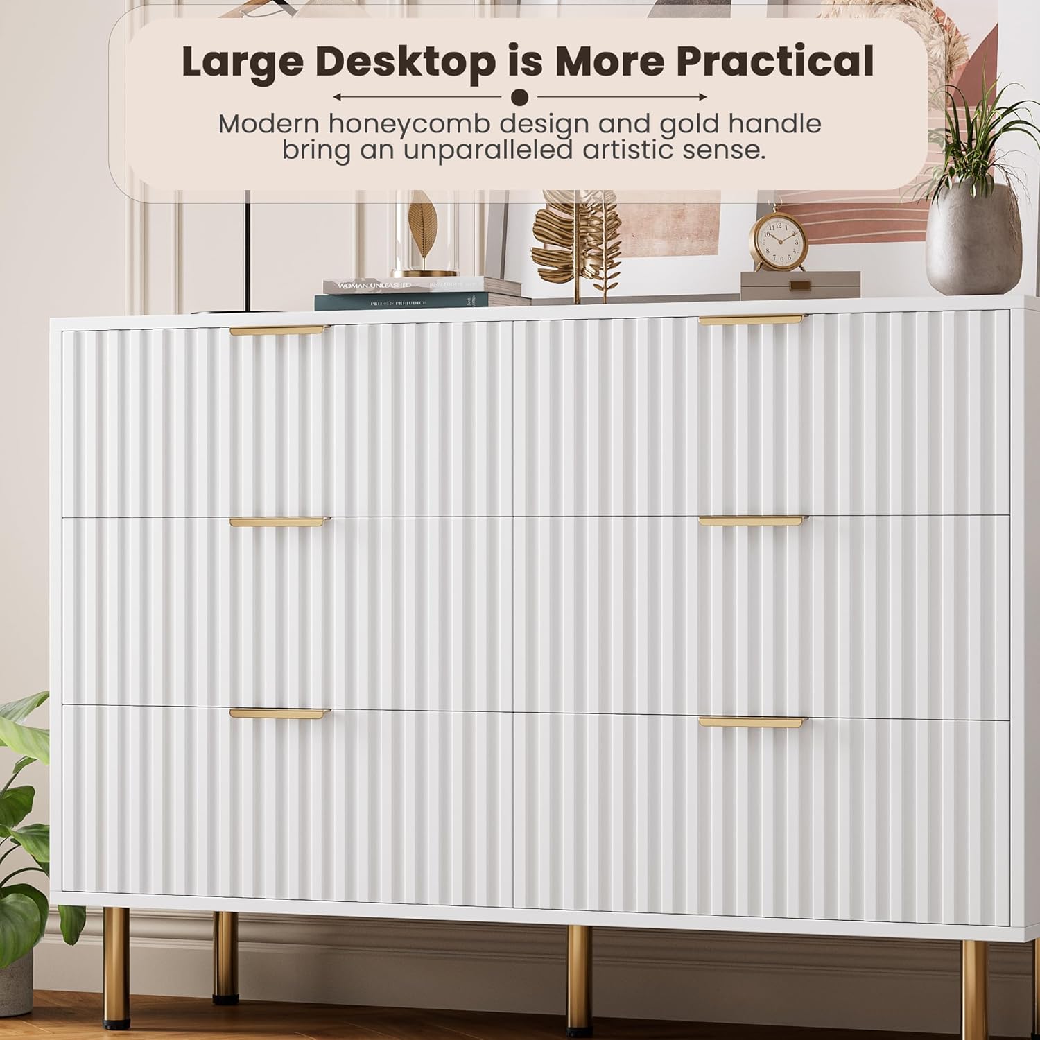 - ăEco-Friendly and Odorlessă Made from robust MDF, this modern white fluted dresser is designed for durability and environmental responsibility, creating a space that is both healthy and visually pleasing. It makes an excellent housewarming gift for family, friends, or loved ones.