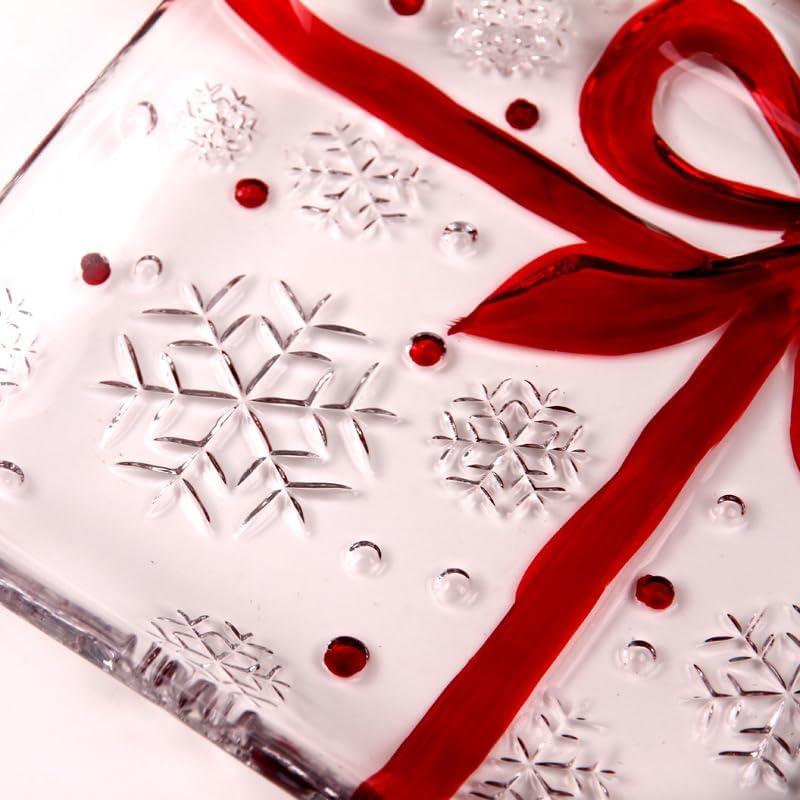 - The plate has a pretty look with a snowflake texture and bow shape
