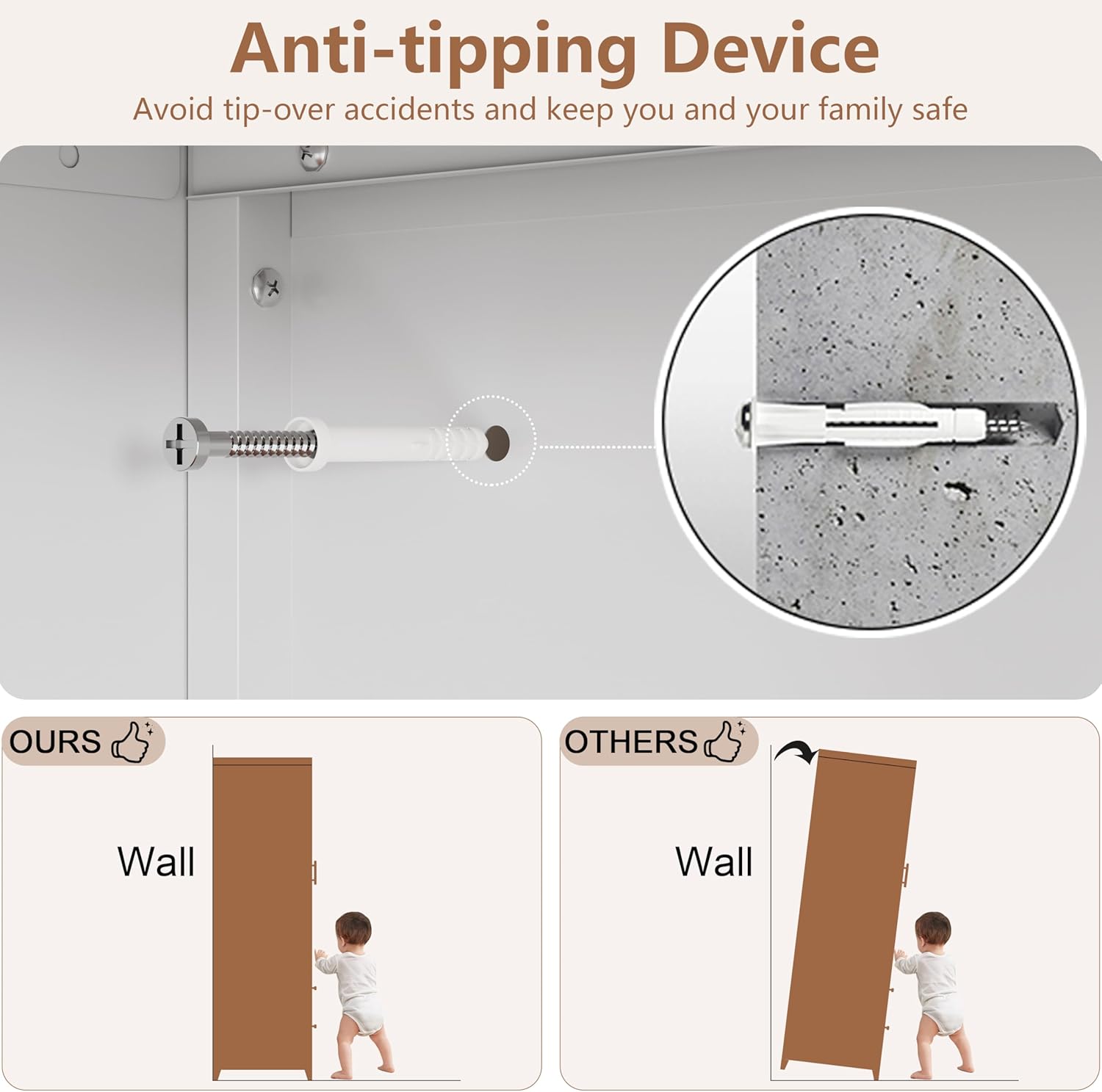 - [PRACTICAL DESIGN] Adjustable shelves allow you to customize storage space. Anti-tipping device will keep you and your family safe. The leveling foot keeps it standing smoothly