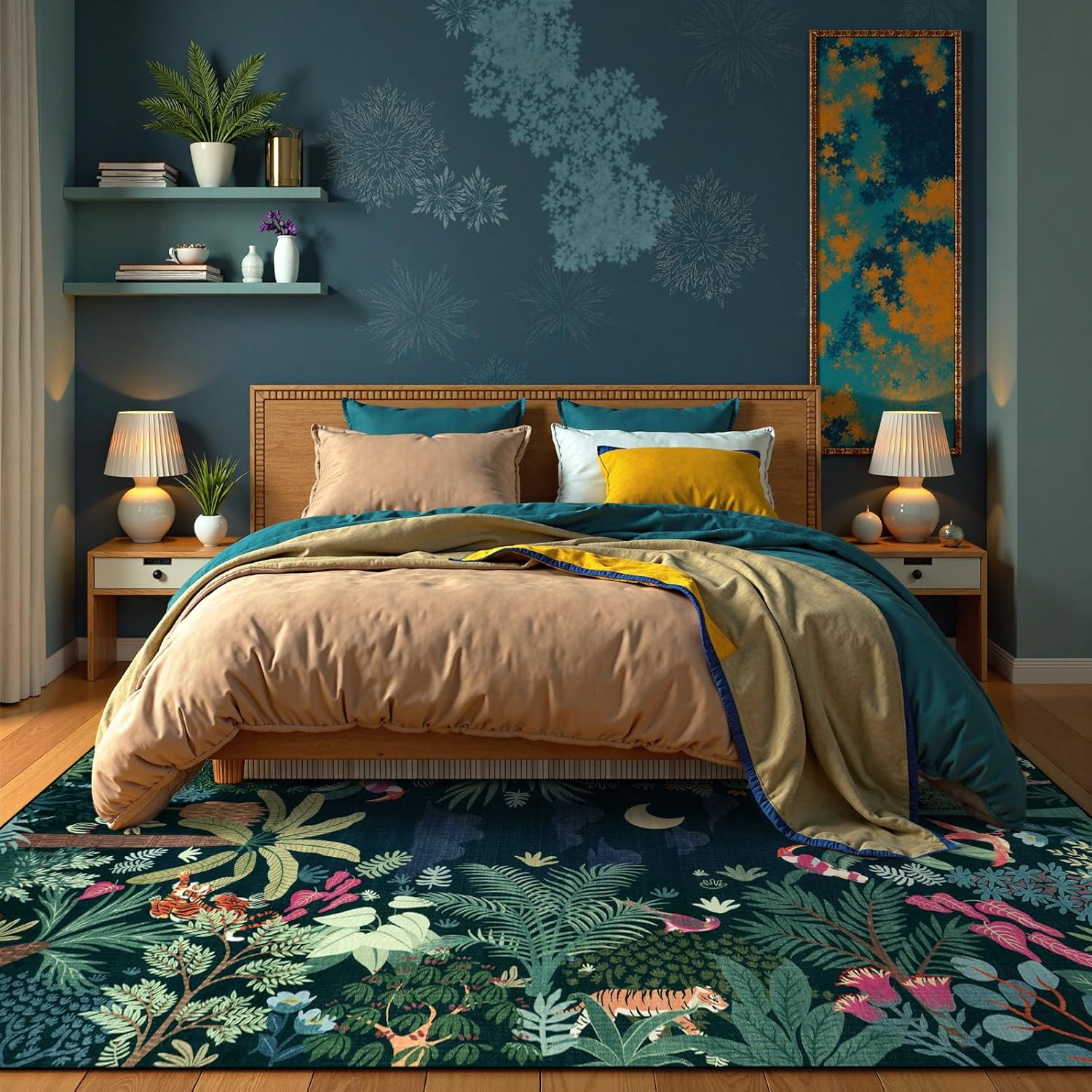 - 【Day and Night Collection】: LIVEBOX Day and Night Collection Rug captures the sky's transformation from dawn to midnight. With vibrant hues of four color, this rug brings the jungle's enchanting beauty and the sky's magical shifts into your space.