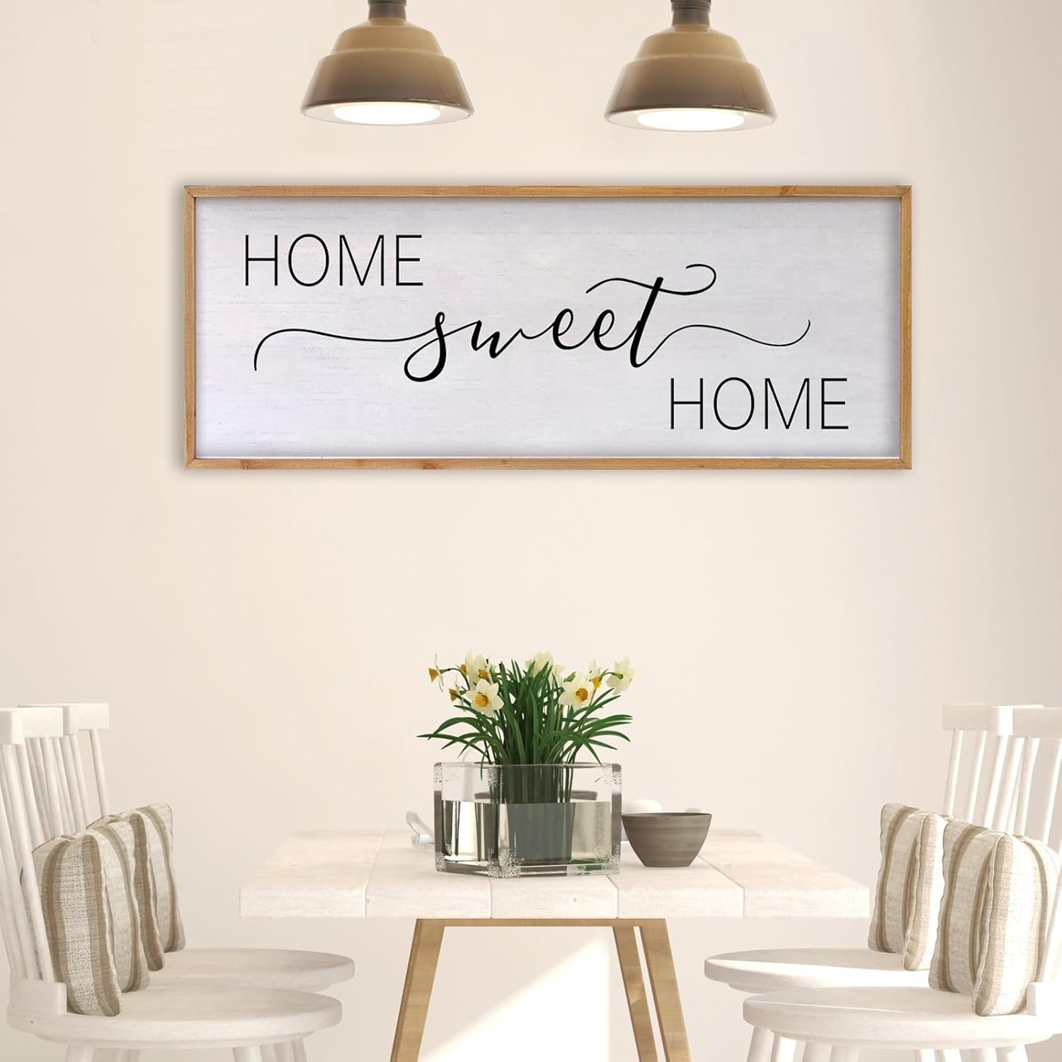 Home Sweet Home Sign Wall Decor 40"x15" Above Bed Living Room Large Wooden Framed Family Plaques Art (Wood)