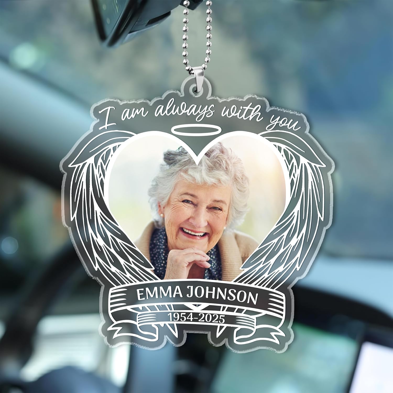2025 Personalized Memorial Acrylic Car Hanging Ornament - Christmas, Birthday, for Loss of Loved One - Custom Photo in Loving Memory Angel Wings Heart Keepsake Decoration