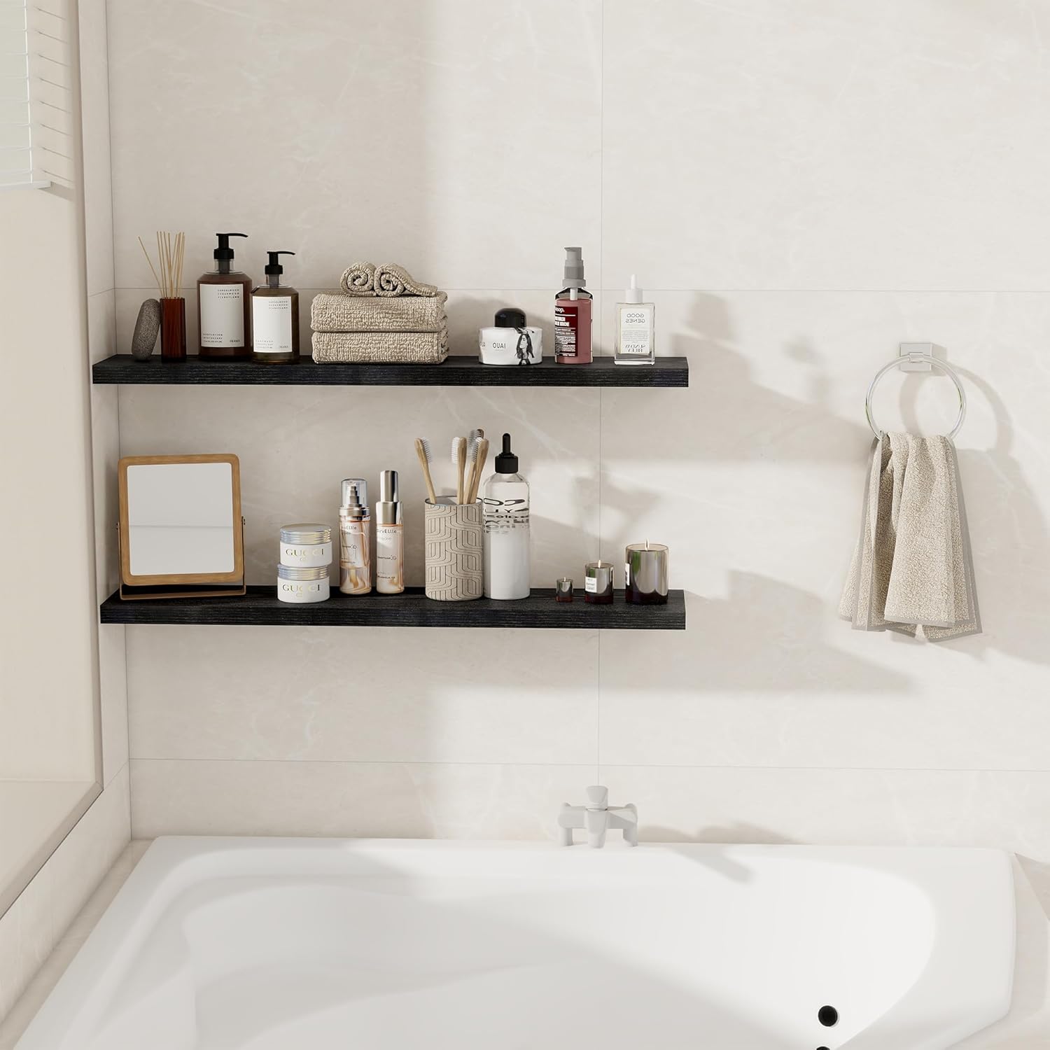Fun Memories 36Inch Floating Shelves for Wall 2 Pack Wood Shelves for Kitchen, Bathroom, Bedroom Wall Mounted Rustic Wood Floating Shelf with Invisible Brackets for Books, Storage, Decor, Black