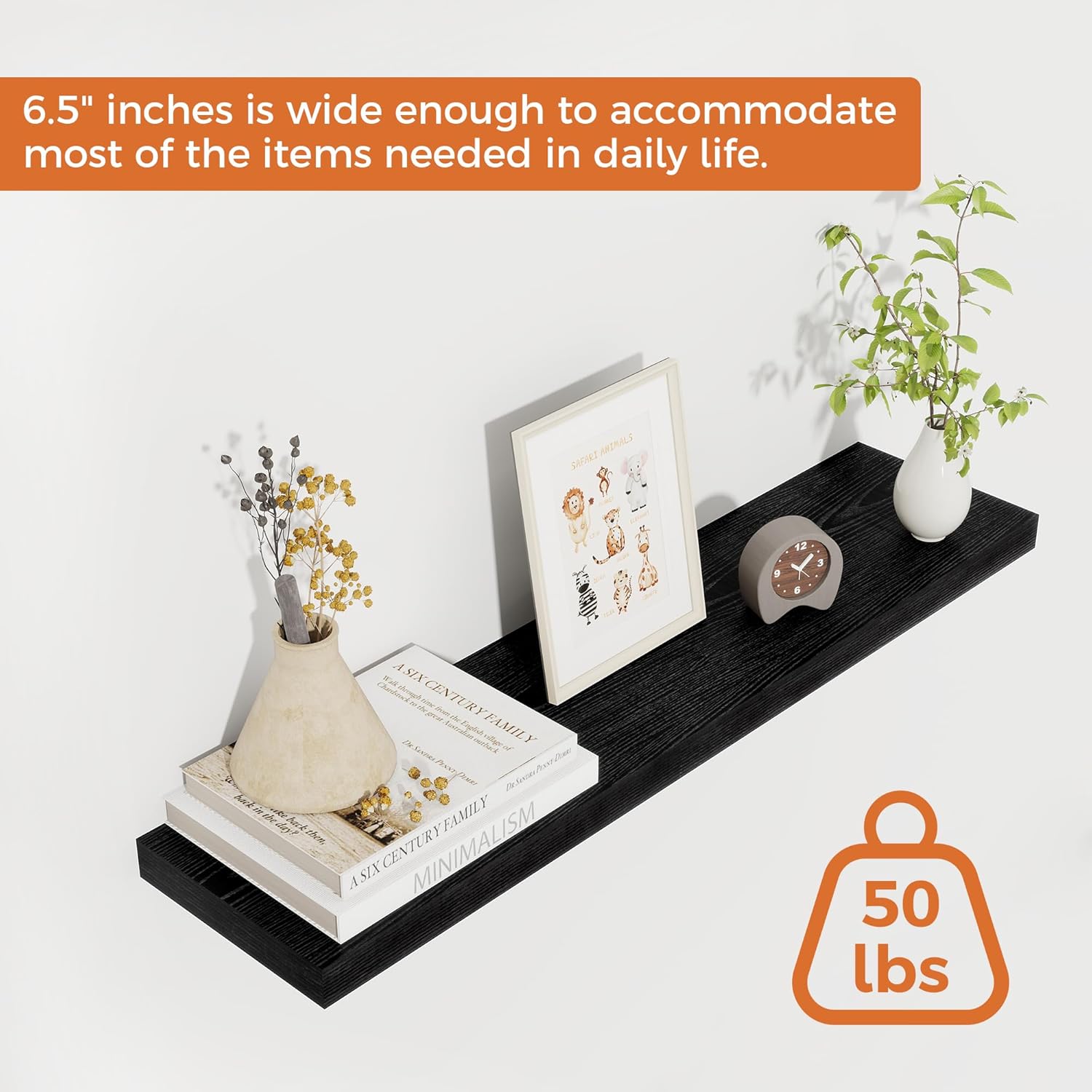 - STYLE & VERSATILITY: Elevate your home with our set of 2 elegant wall shelves, designed for versatile display options. Arrange them side by side for a clean, unified look, or stagger them for a bold, dynamic effect. Adding a touch of sophistication while providing practical storage