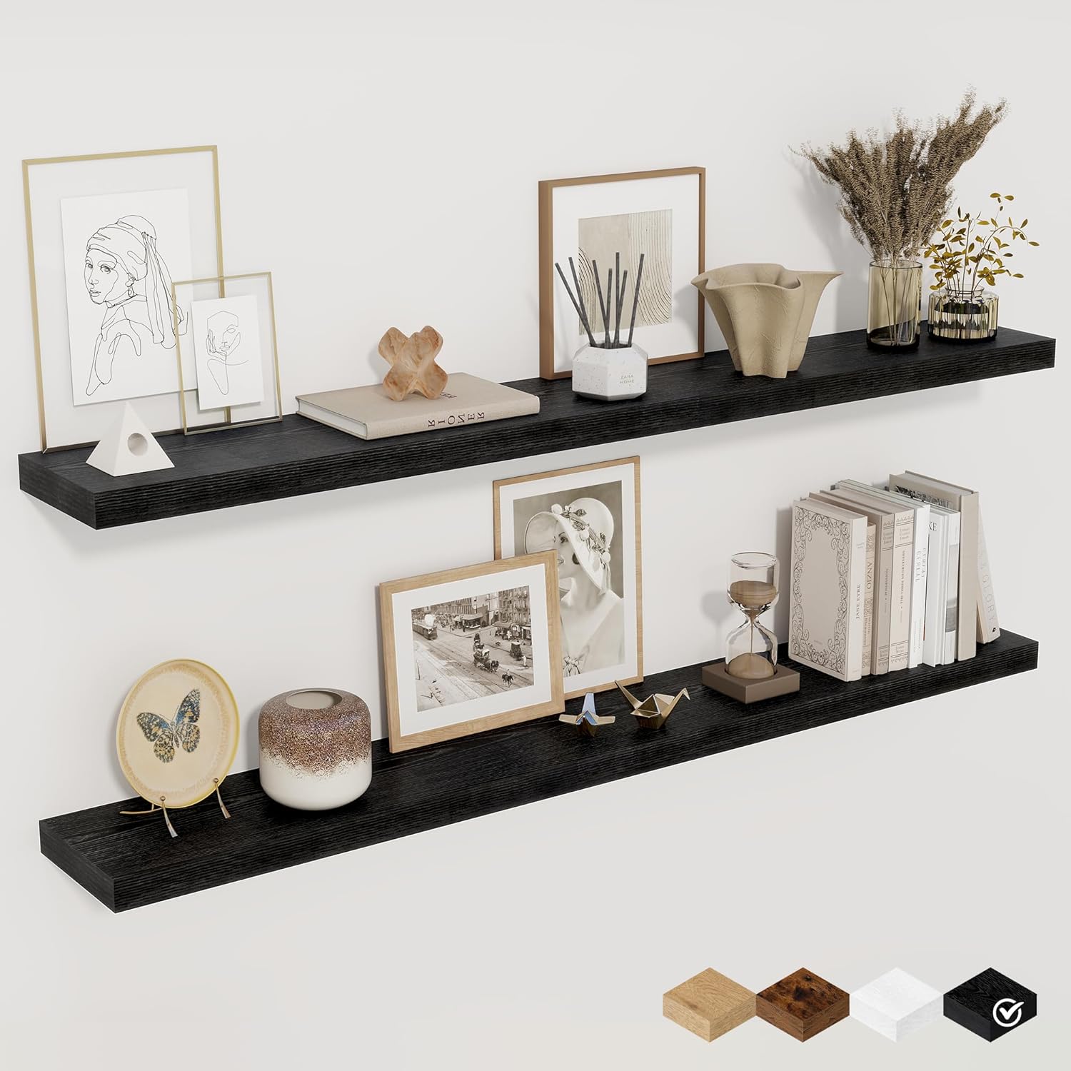 - Free Up Space in Your Home: Wooden floating shelves are perfect for displaying charming showpieces, trophies, photo frames, decorative items, and other treasured possessions—while also providing functional storage. Maximize your wall space without taking up any floor space. Enhance your home, bathroom, or living room decor by filling empty wall areas above desks, fireplaces, entryways, vanities, or between windows with stylish and practical shelving