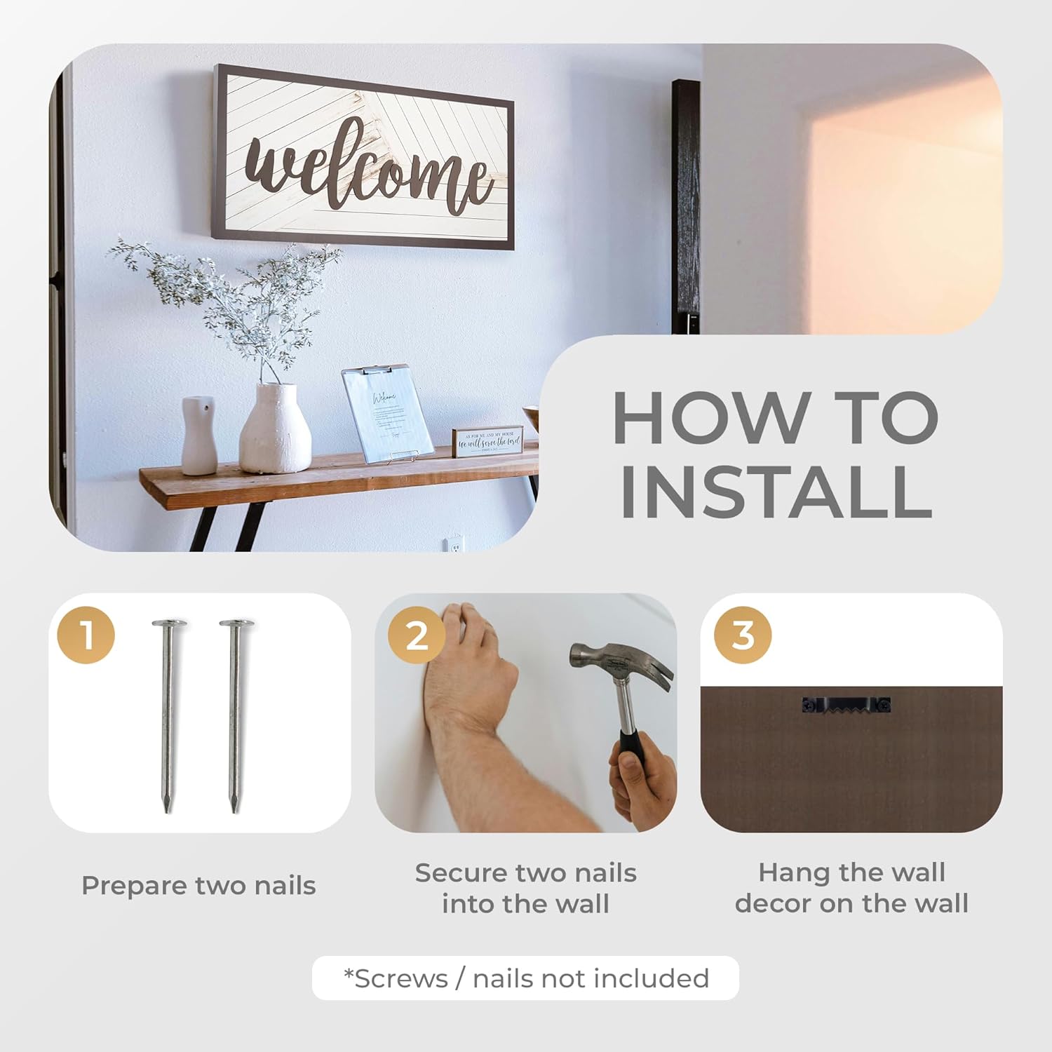 - [UNIQUE DESIGN] Add warmth and personality to your space with this rustic wooden welcome sign. The handcrafted frame and raised lettering create a timeless farmhouse look that fits beautifully in, entryways, living rooms, foyers, apartments. Neutral tones make it easy to pair with farmhouse, rustic, or modern décor.