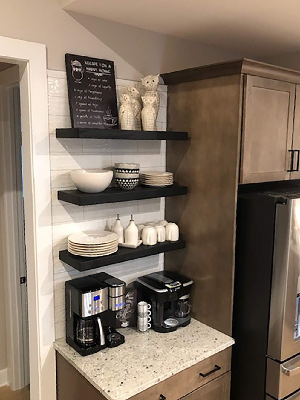 - UPGRADES YOUR LIVING SPACE: Introducing our versatile stock colors: black, mocha, grey, and medium brown. They effortlessly suit any décor style, from farmhouse to contemporary. If you are tired of looking at those plain dull walls? Give your living room a unique and lived-in style by using our floating shelves.