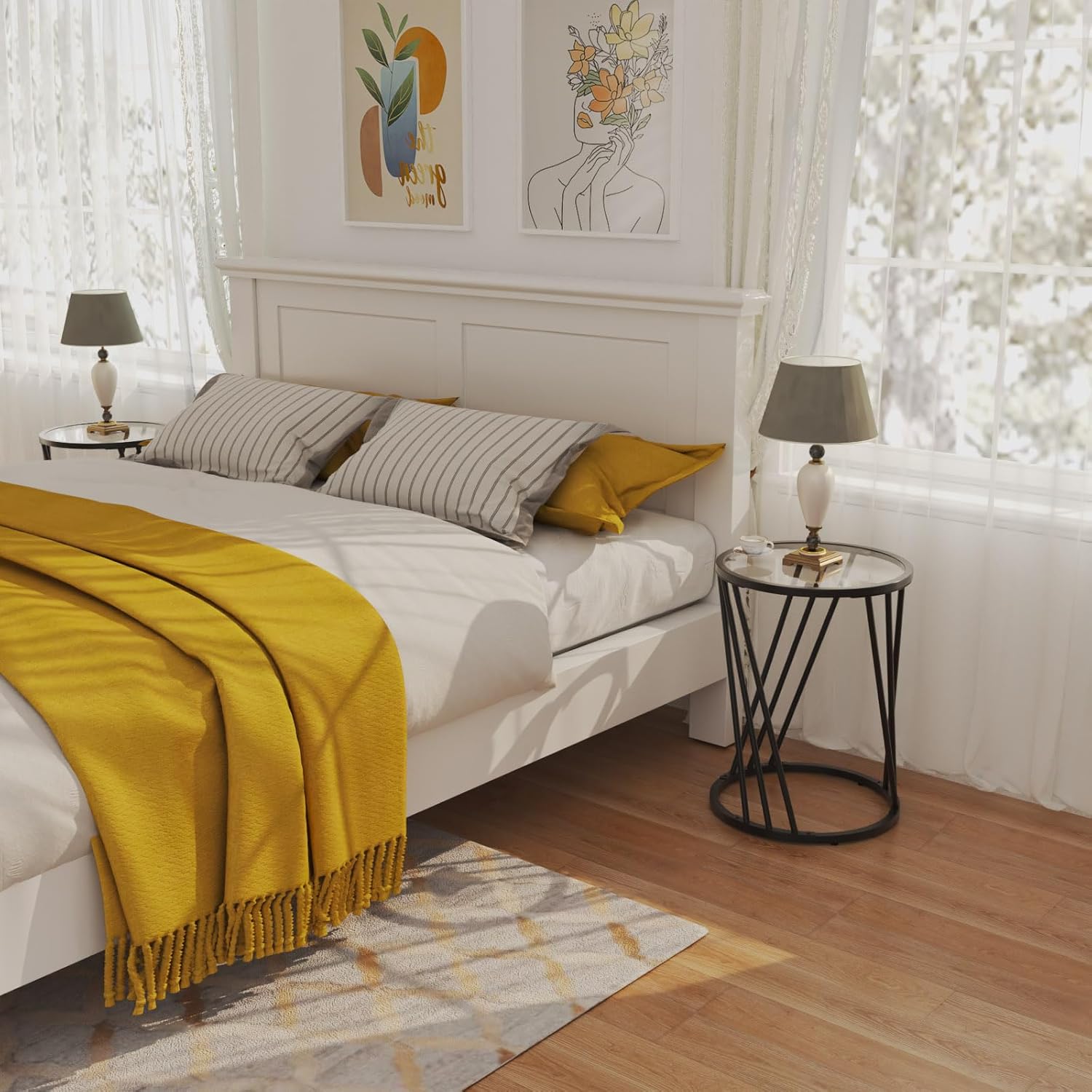- ăSuperior QualityăThis modern side table features a durable 5mm shatter-resistant tempered glass top and sturdy metal legs, ensuring long-lasting use for everyday living. The round glass top is easy to clean and worry-free about sharp corners.
