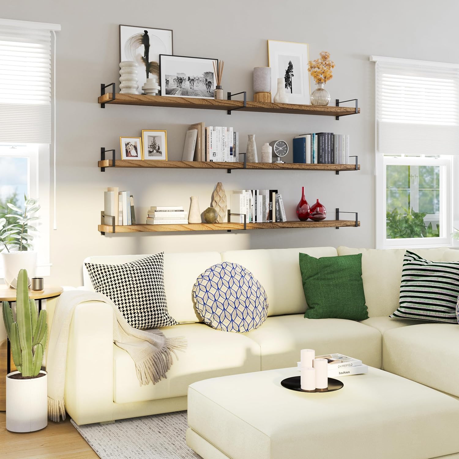 - Chic and Functional: Toledo wooden floating shelves for wall provide practical and functional solutions with their solid wood structure. On the other hand, smartly designed brackets provide bookend function and bring a sleek appearance while preventing the books are falling down. Have more storage capacity, functionality, and chic home decor at the same time in your room.
