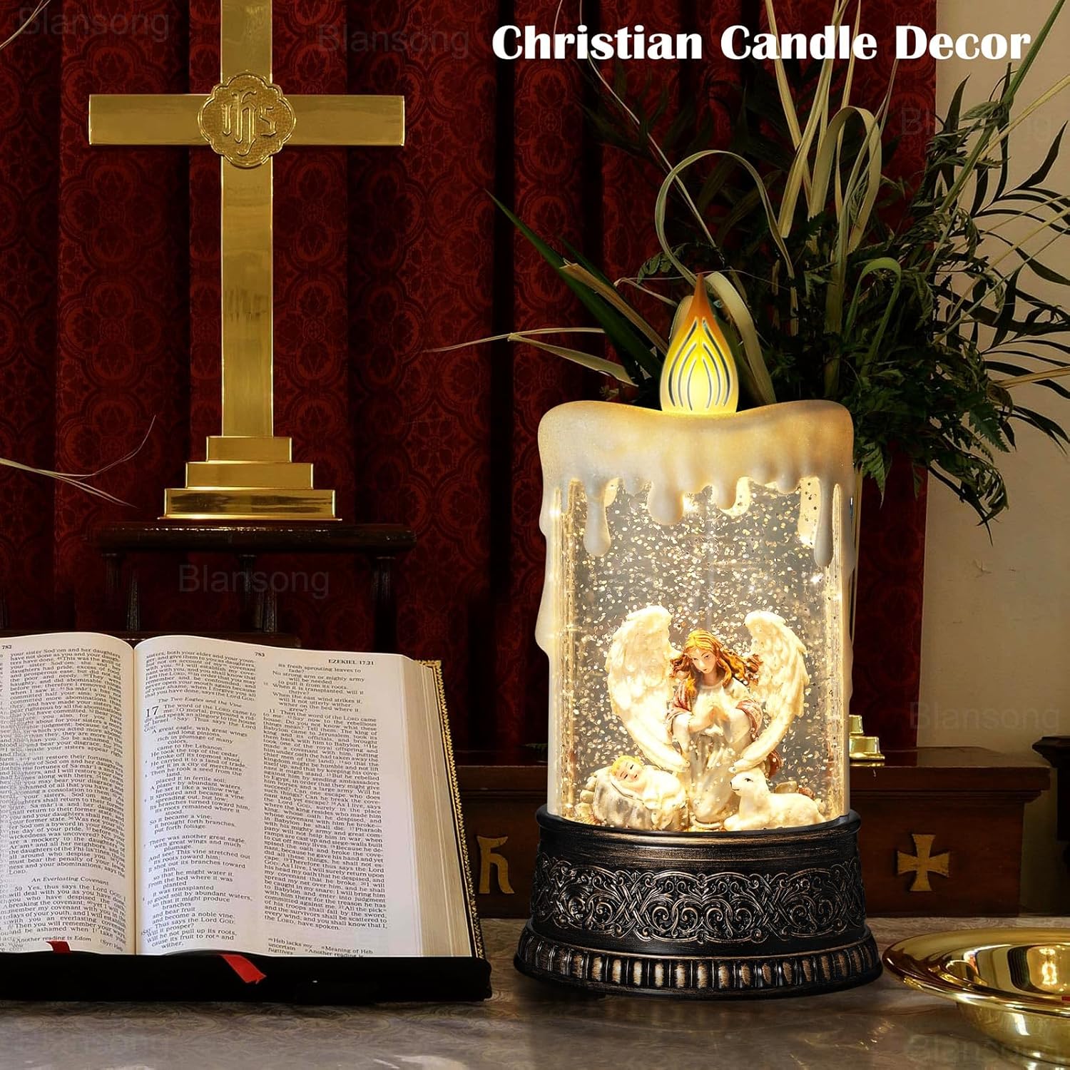 Nativity Snow Globe Candle Christmas Decorations Gifts Auto Snowfall Glitter Music Collection Angel Nativity Scene with 6H Timer USB/Battery Powered 9.7 inch
