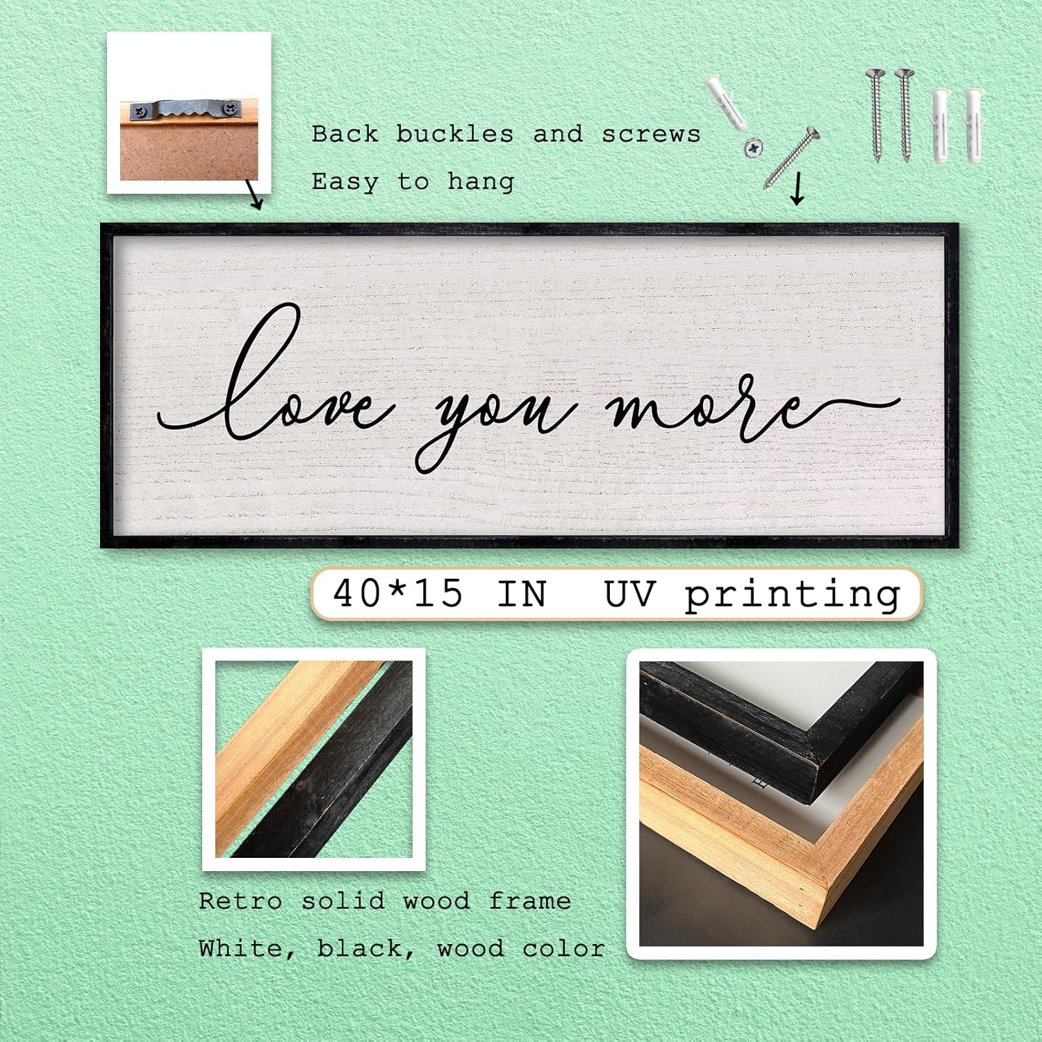 LuZhiQiang Love You More Sign Wall Decor 40"x15" for Master Bedroom Above Over Bed Large Simple Wood Framed Hanging Wall Art (Black)