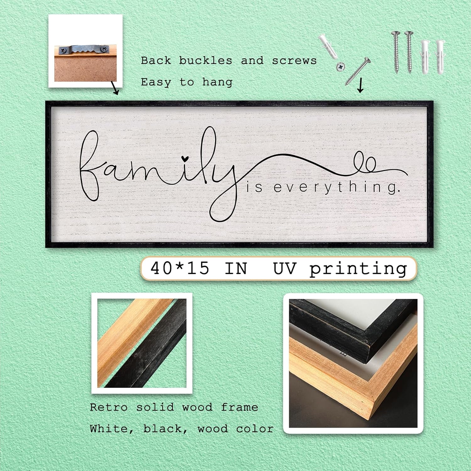 LuZhiQiang Family is Everything Sign Wall Decor 40"x15" Warm Home Sign Wall Art for Entryway Large Hanging Wood Framed (Black)