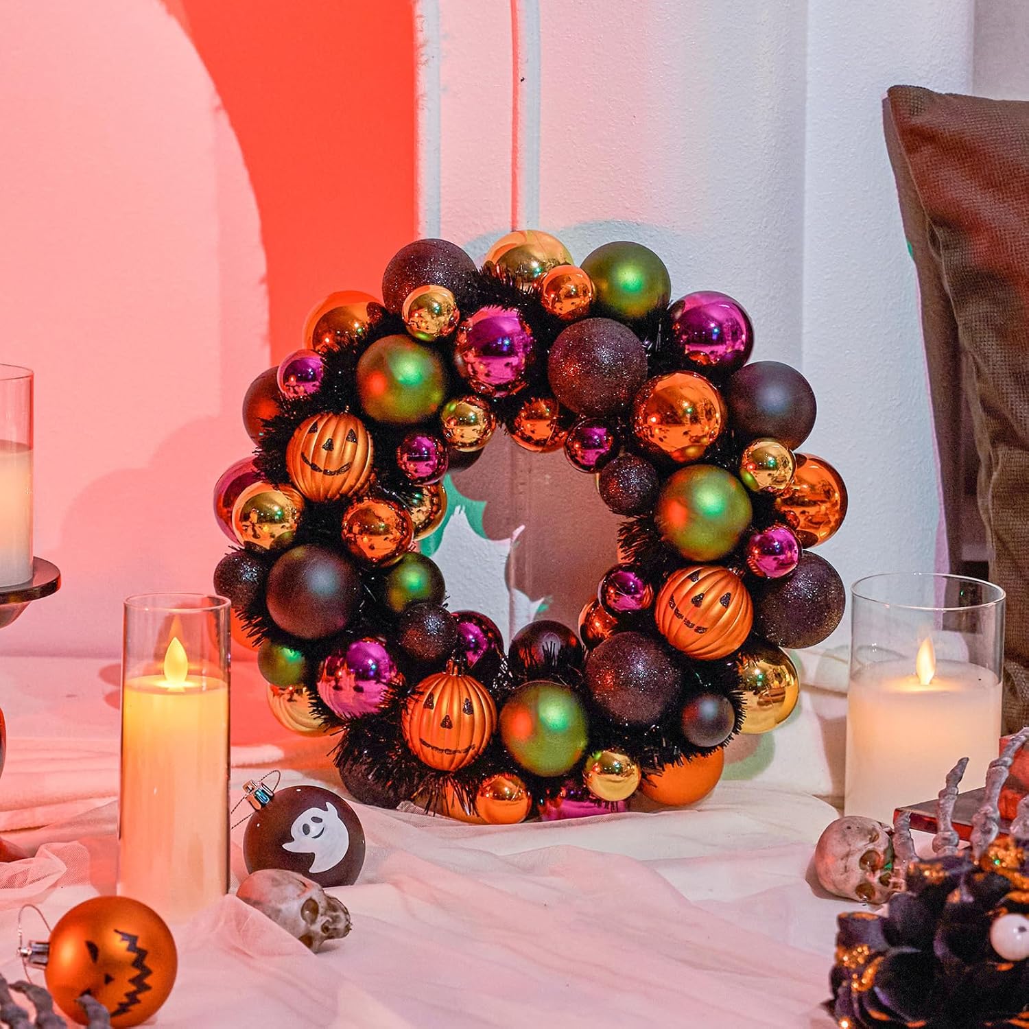 - 🎃 VERSATILE SPOOKTACULAR STYLE - More than Halloween! Its unique ball shape offers year-round versatility: * Halloween: Hang on doors, walls, or gates; use as a haunting centerpiece or shelf accent. * Beyond: Nestle into Thanksgiving centerpieces, incorporate into Gothic Christmas decor, or add dark elegance to bookcases and mantels year-round