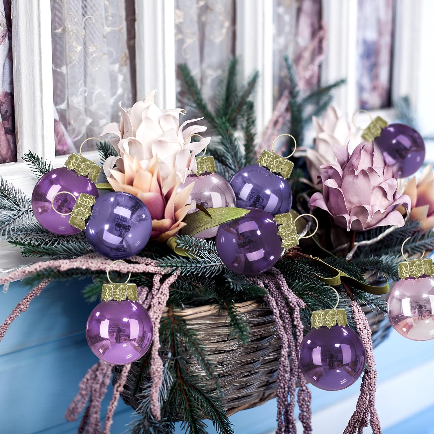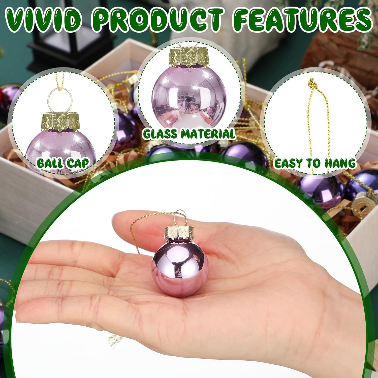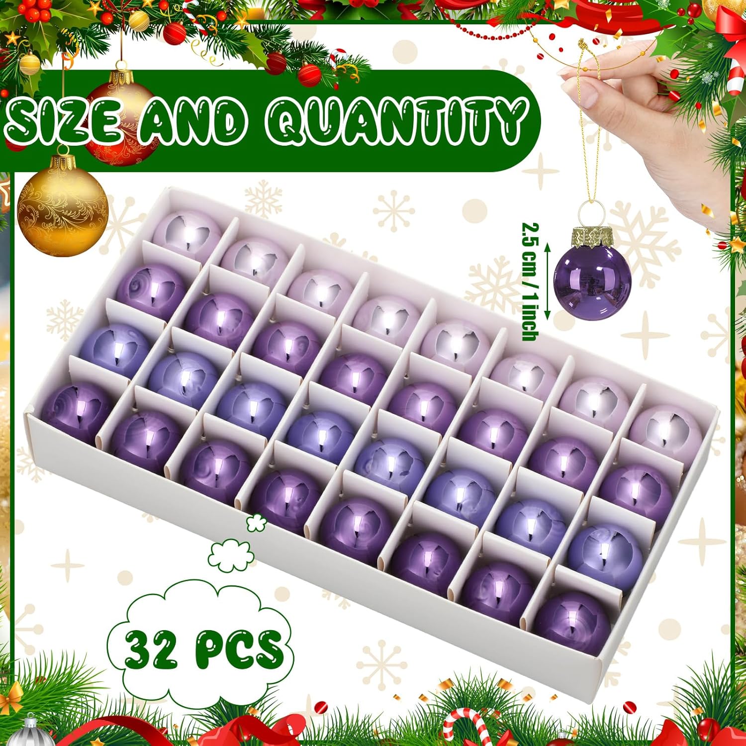Tioncy 32 Pcs 1 Inch Mini Glass Christmas Ornaments Balls Shiny Christmas Balls Tiny Tree Hanging Decoration Small Colorful Ball Pendant for Xmas Party Supplies(Purple Series)