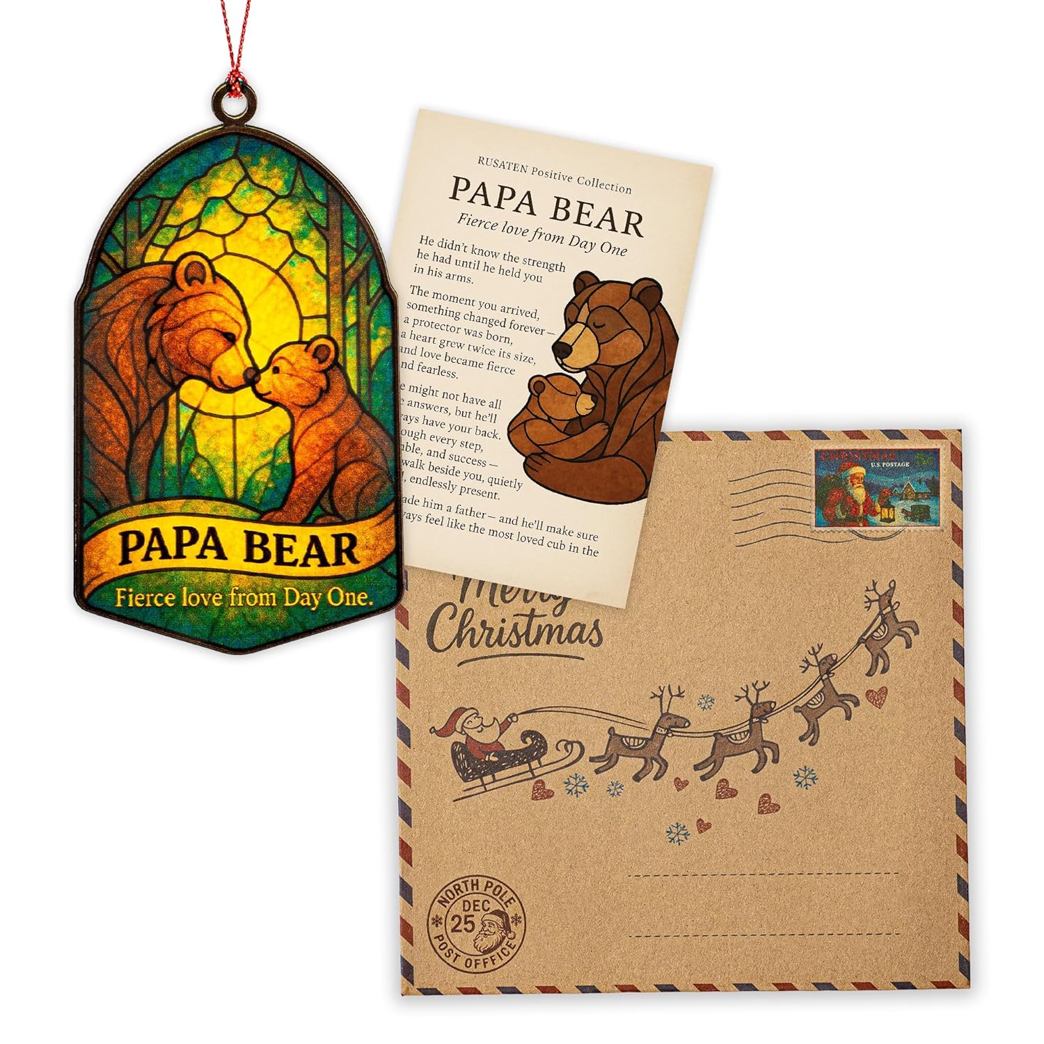 Best Papa Gifts, Best Dad Ever, Christmas Ornament 2025, Suncatcher Effect Stained Glass Window Hanging, Car Hanging Accessories