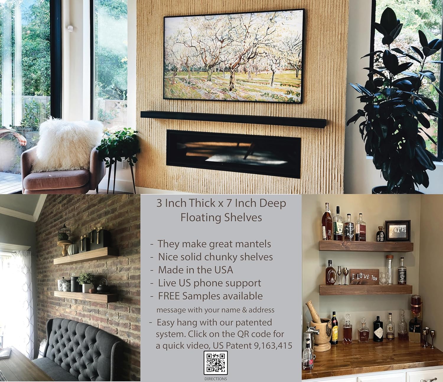 - Handcrafted Solid Wood – Built to Last: Made in the USA from real solid pine, these shelves for room wall use premium-quality wood with natural knots and grain variations, giving each shelf a unique look. Engineered for durability, they are built to support up to 40 lbs using our patented invisible steel bracket (US Patent No: 9,196,415) – no sagging, no wobble.