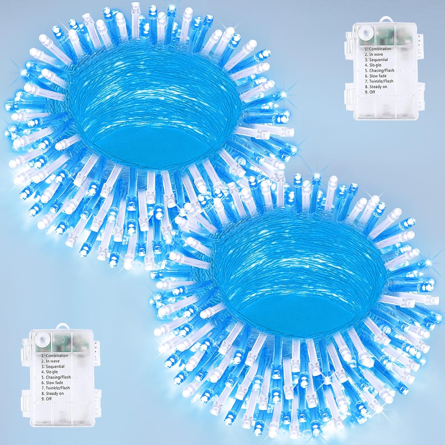 2 Pack String Lights Battery Operated with Timer, 66FT 200 LED Waterproof Battery Twinkle Lights, 8 Modes Fairy Light for Indoor & Outdoor Party Bedroom Christmas Decorations (Blue and White)