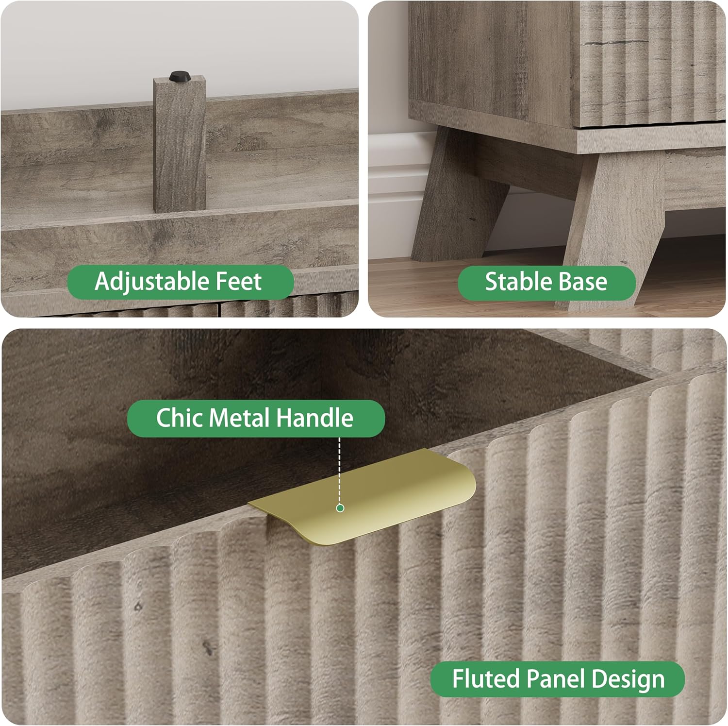 Fluted Dresser for Bedroom with 6 Drawers, 48" Wide Modern Chest of Drawers with Metal Handle, Wooden Dresser TV Stand, Wood Closet Clothes Storage Organizer for Living Room, Hallway, Grey