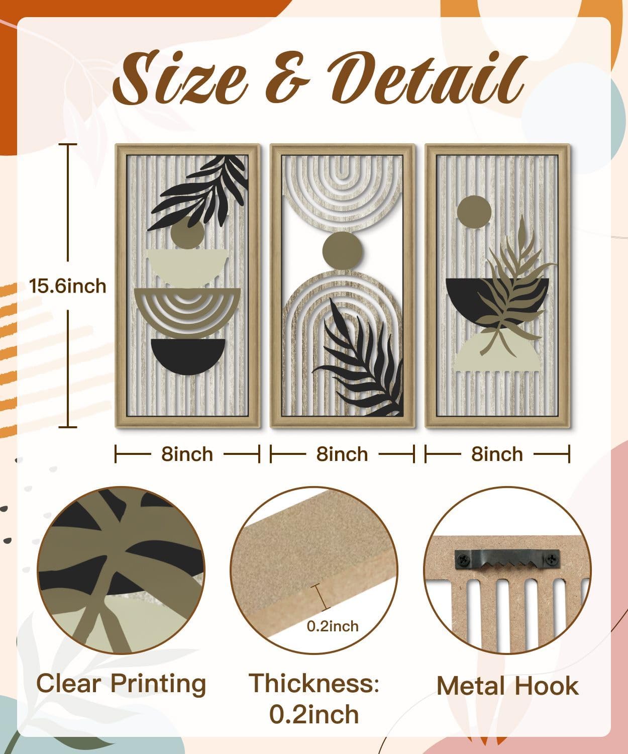- Compact and Versatile Size: Each panel measures 16.5 x 8.6 inches, ideal for narrow or small wall areas. Hang together in a vertical set, horizontal line, or separately in different rooms.