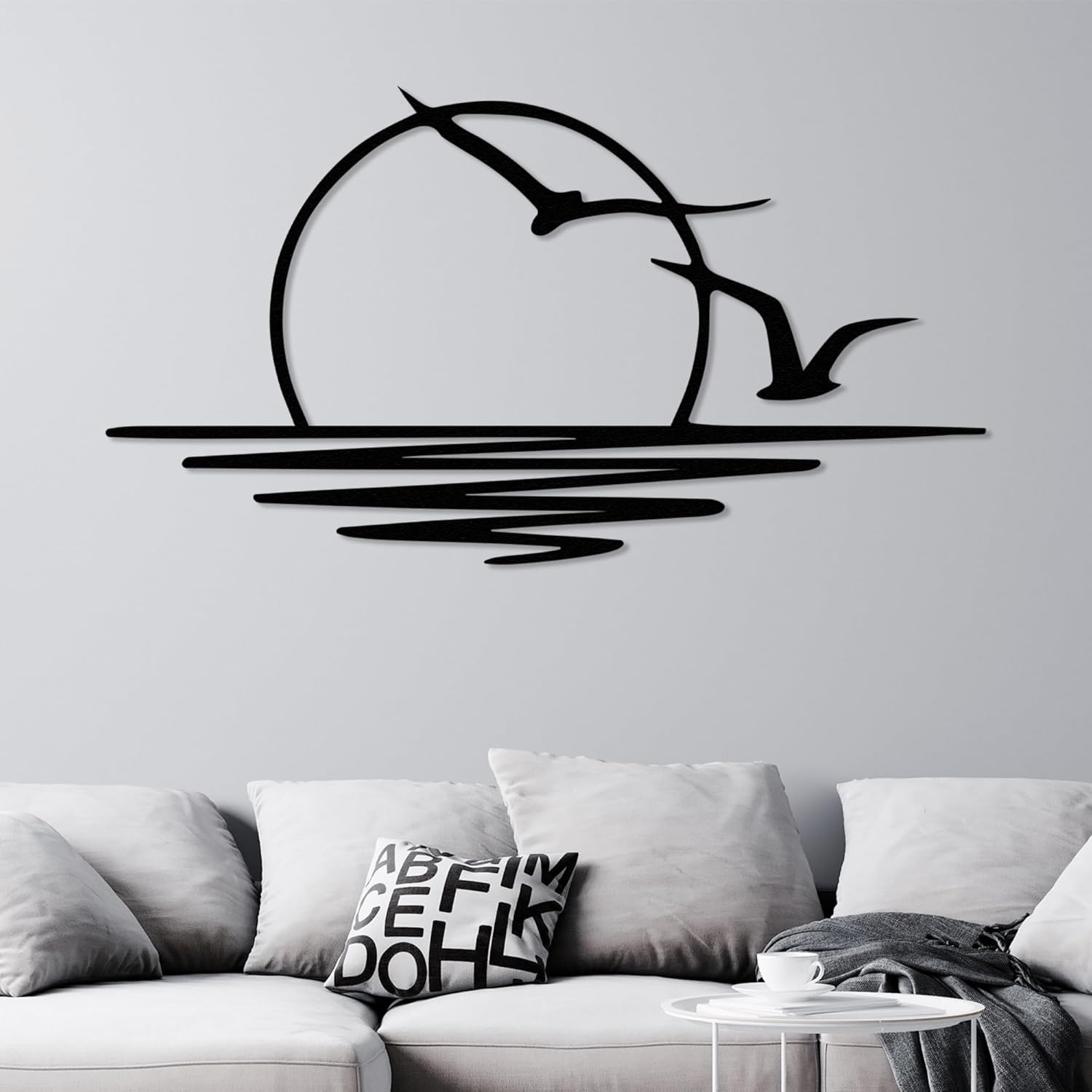 Wita Home Sunset with Seagulls Metal Wall Mounted Art, Handcrafted Metal Home Decor with Static Powder Coating, Eye-Catching Addition to Living Room Decor, Modern Beach Decor for Indoor and Outdoor Spaces, Perfect Housewarming Gift (56 x 28 inches)