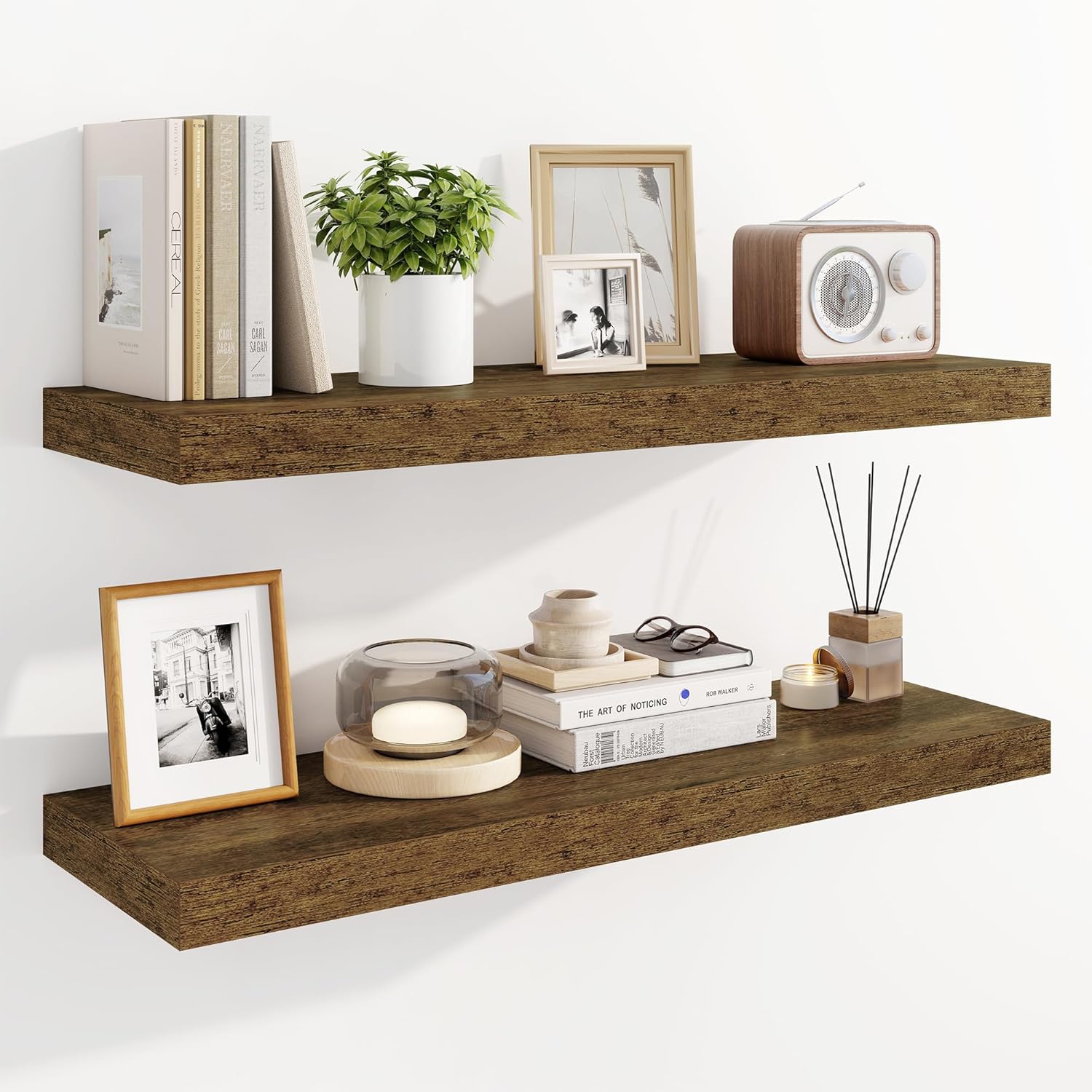 - Sturdy & Reliable: Robust construction floating shelves for wall supports everyday items (books, decor, bathroom essentials, kitchen spices) with stability, combining practicality with timeless style