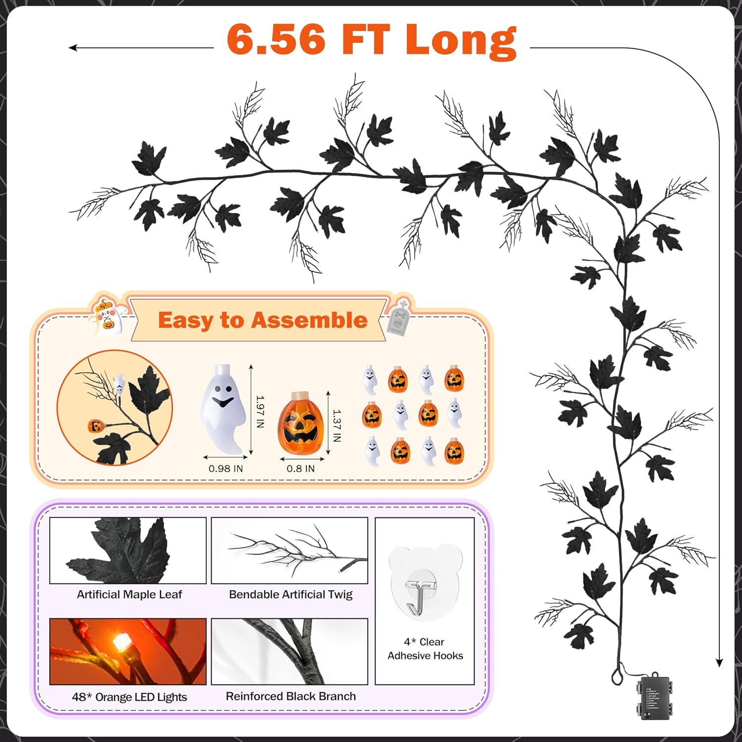 - Well Made: Halloween lighted willow vine twig is crafted with sturdy wire and plastic materials; covered nicely with a black tape to reinforced the branches; artificial maple leaves is vivid and realistic, adds finishing touch to the willow vine twig