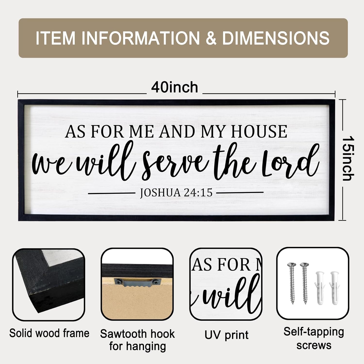 As For Me And My House We Will Serve The Lord Framed Wall Art, 40''×15'' Vintage Positive Religious Bible Verse for Christian God Jesus Christ Prayer, Rustic Long Holy Catholic Scripture Decor