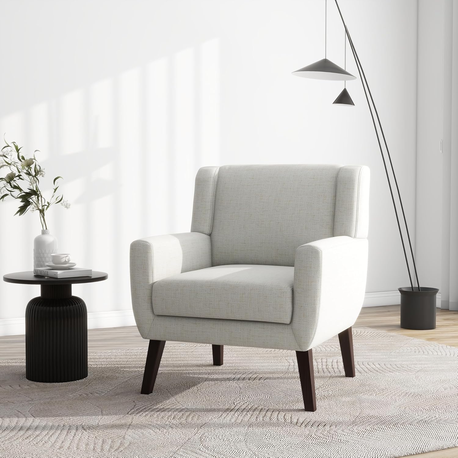 UIXE Accent Chair, Fabric Upholstered Armchair for Living Room, Comfy Arm Chair Single Sofa Bedroom Side Reading Seat - Flax Beige