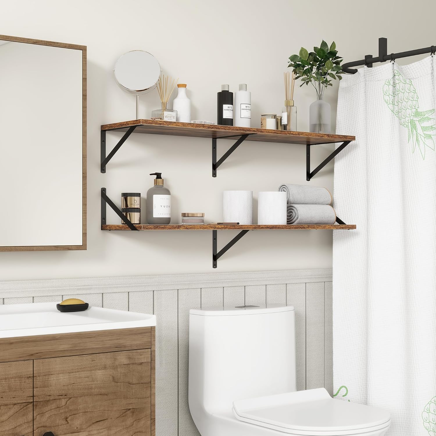 Fun Memories 40 Inch Floating Shelves, 10 Inch Deep Wall Shelf, 40 x 10 Floating Shelf Set of 2, Wood Floating Shelf Wall Mounted, Large Kitchen Living Room Bedroom Storage Shelves, Rustic Brown