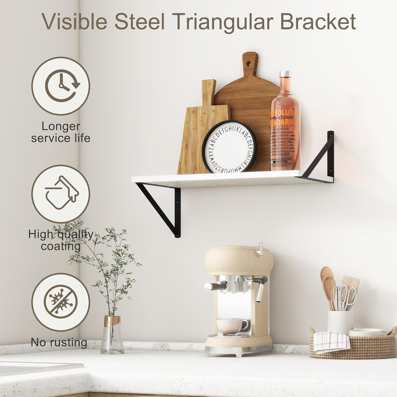 - ăDECORATIVE & FUNCTIONALăThe wall-mounted floating shelves are designed for decoration and storage, utilizing and decorating any space in your home. Used as shelf decor to show your collection, books, or prize, the hanging shelves are perfect for displaying your photo frame, small plants, model, or audio in your living room, office, study. And can also use as over the toilet storage shelf in the bathroom to hold toiletries or used as kitchen shelf to storage condiments.