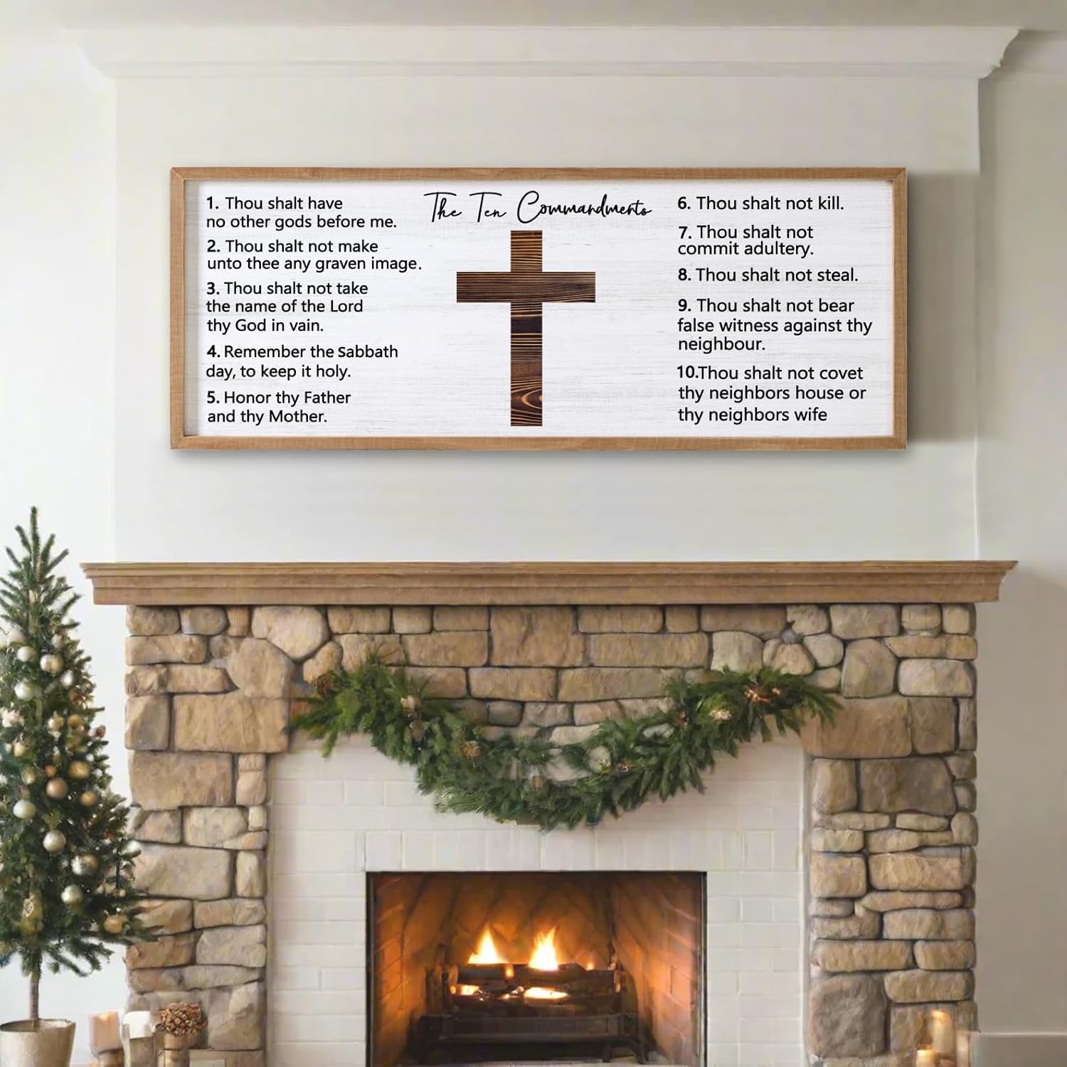 Ten Commandments Rustic Bible Verse Framed Wall Art 40" x 15" Natural Religious Christian Slogan Representing God Jesus Christ Prayer Vintage Holy Inspirational Catholic Scripture Decor