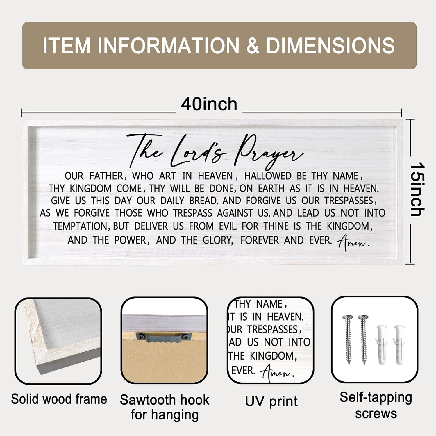 Our Father Prayer Bible Verse Framed Wall Art, 40''×15'' White Horizontal Religious Christian Lords Prayer Sign for God Jesus Christ Prayer, Rustic Holy Inspirational Catholic Scripture Decor