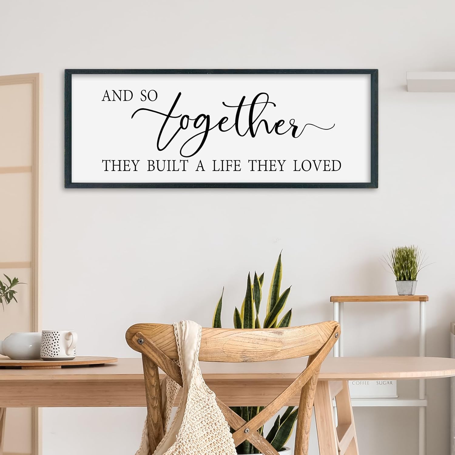 SRSZHIYUE And So Together They Built A Life They Loved Above Bed Sign Wall Decor Art 40"×15" for Master Bedroom Over Bed Large Wood Framed Wall Hanging (Black)
