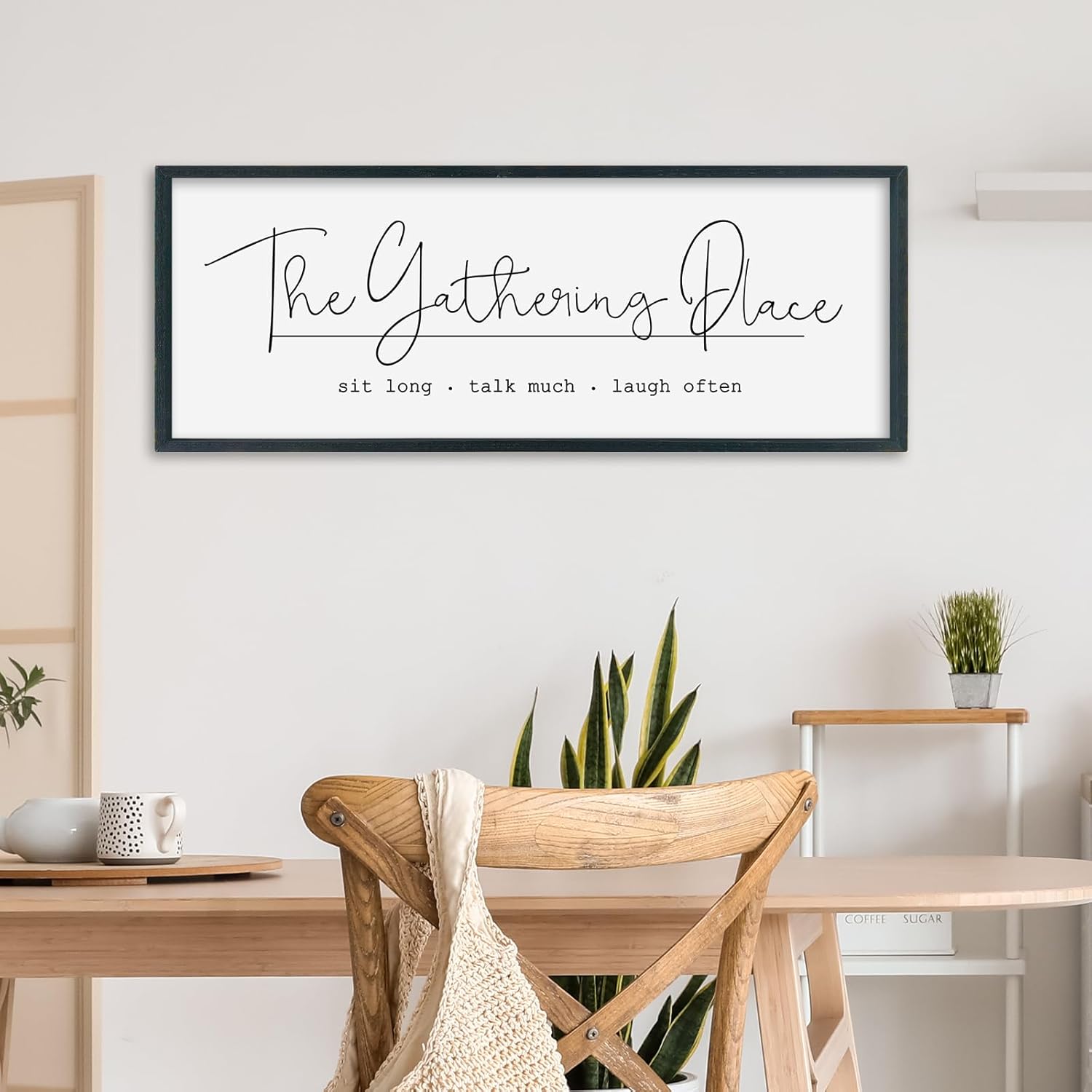 SRSZHIYUE The Gathering Place Sign Wall Decor Art 32"×12" for Large Kitchen Dining Room Wood Framed Wall Hanging (Black)