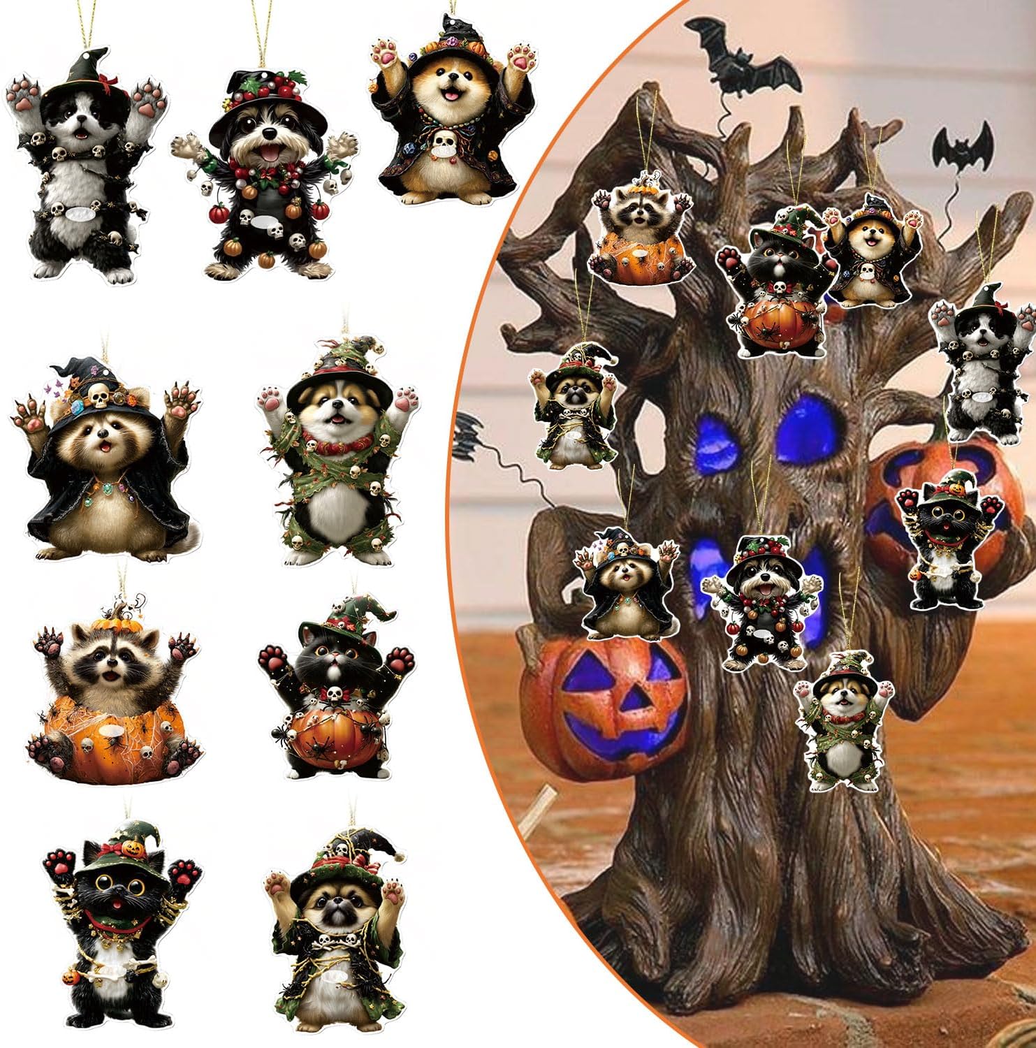 Halloween Tree Decoration,9 Pcs Funny Raccoon Acrylic Pendant, Terror Cartoon Animal Halloween Accessories, Funny Cartoon Christmas Tree Hanging Ornaments for Indoor Outdoo
