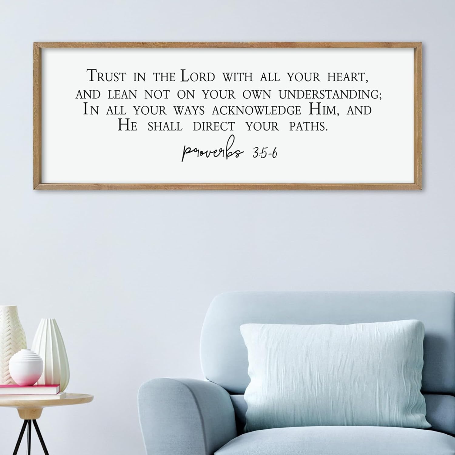 LuZhiQiang Trust in the Lord With All Thine Heart Wall Decor Art 40"×15" Bible Verse Proverbs 3:5-6 Sign Scripture Christian Large Wood Framed Hanging (Wood)