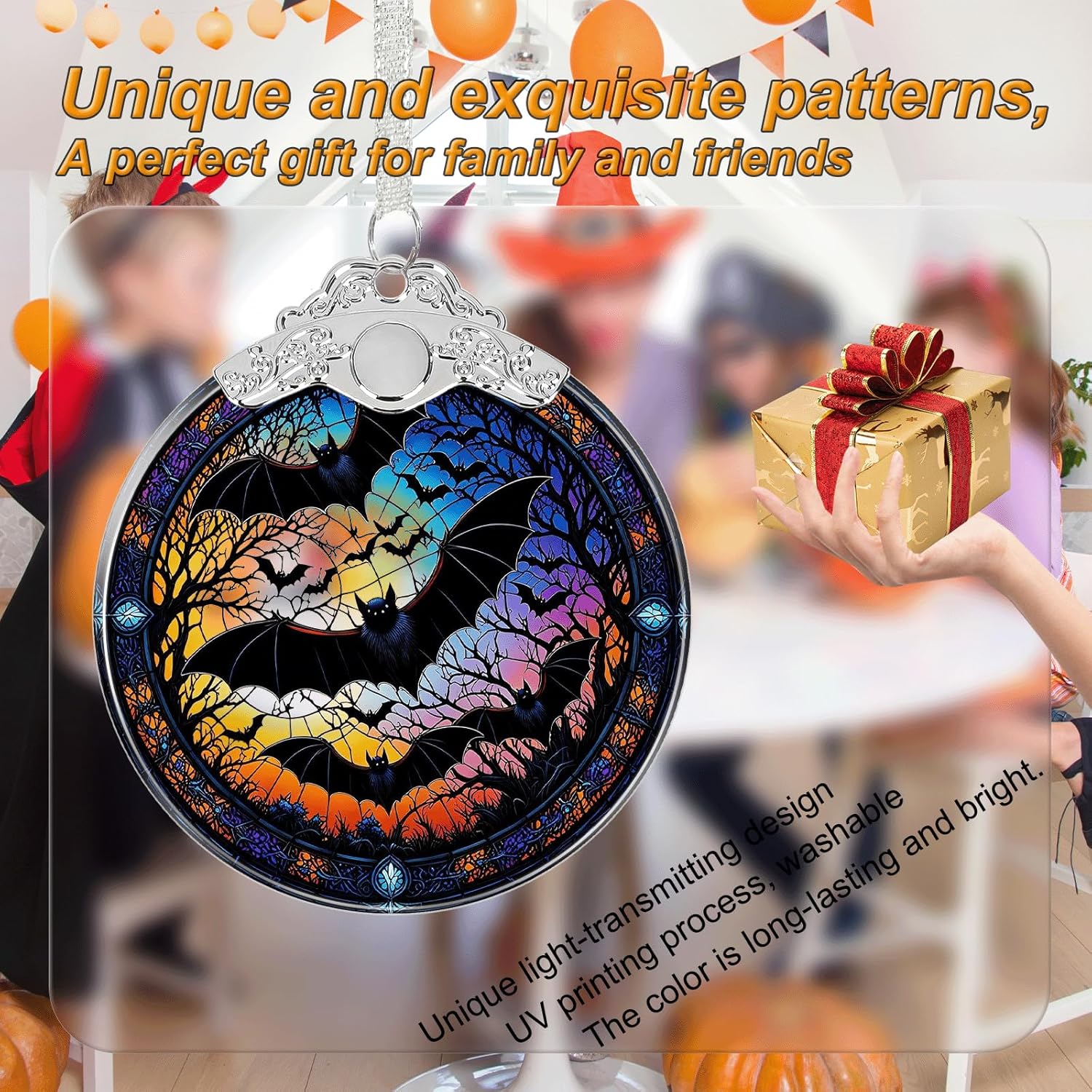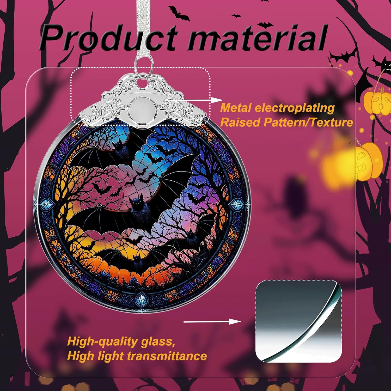 Bat Under Moonlight Halloween Christmas Tree Ornament Glass- Hanging Ornaments for Christmas Tree Decorations - Holiday Keepsake Present Exchange Idea