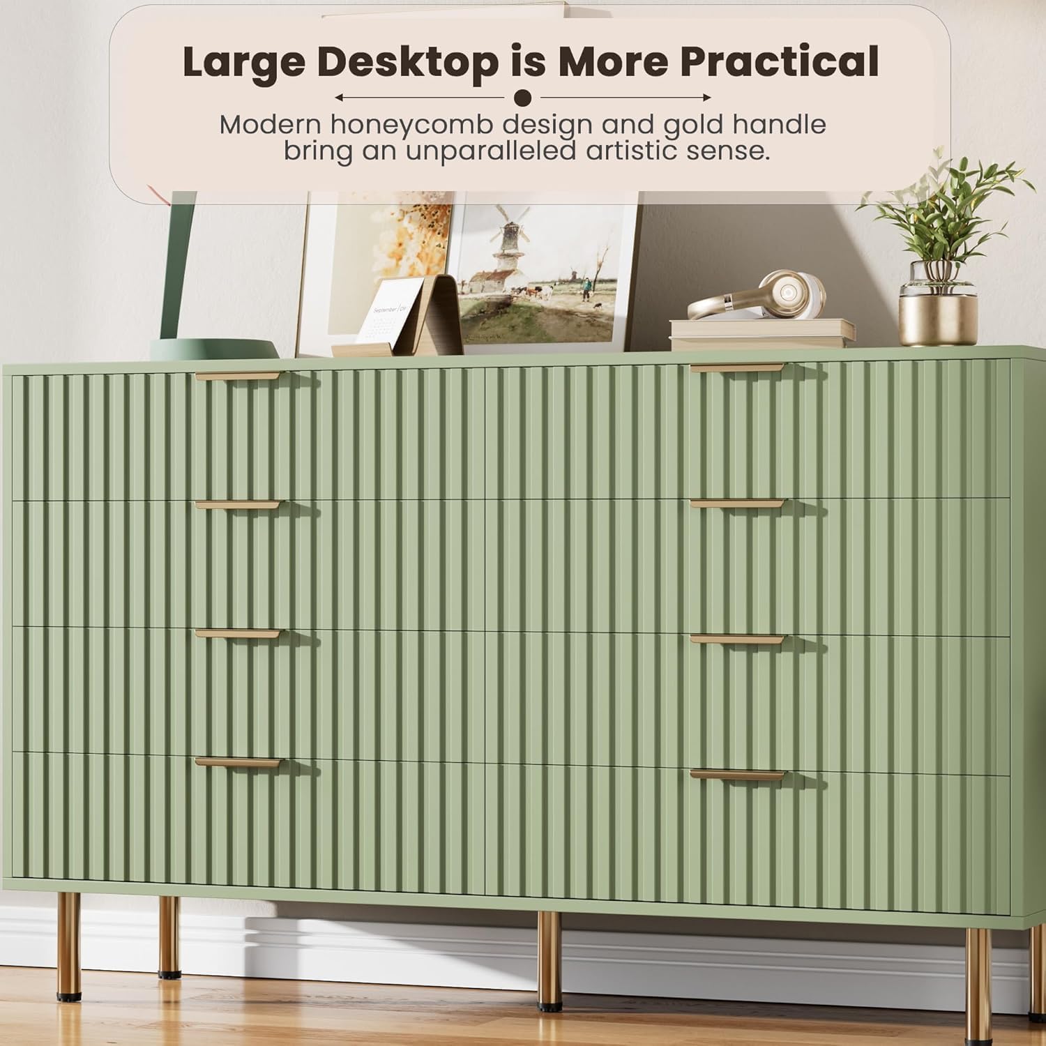 - ăEco-Friendly and Odorlessă Made from robust P2 certified MDF, this modern green fluted dresser is designed for durability and environmental responsibility, creating a space that is both healthy and visually pleasing. It makes an excellent housewarming gift for family, friends, or loved ones.