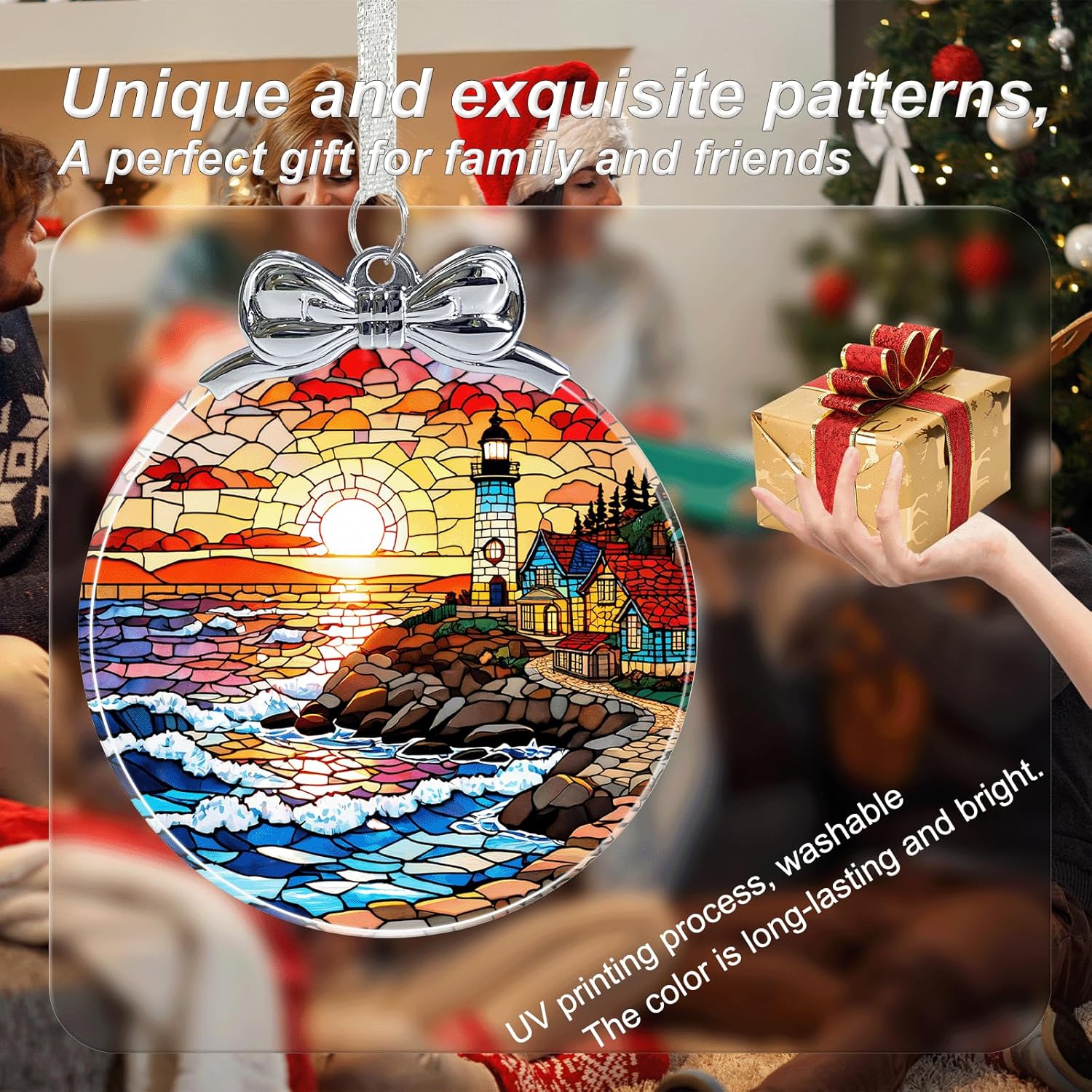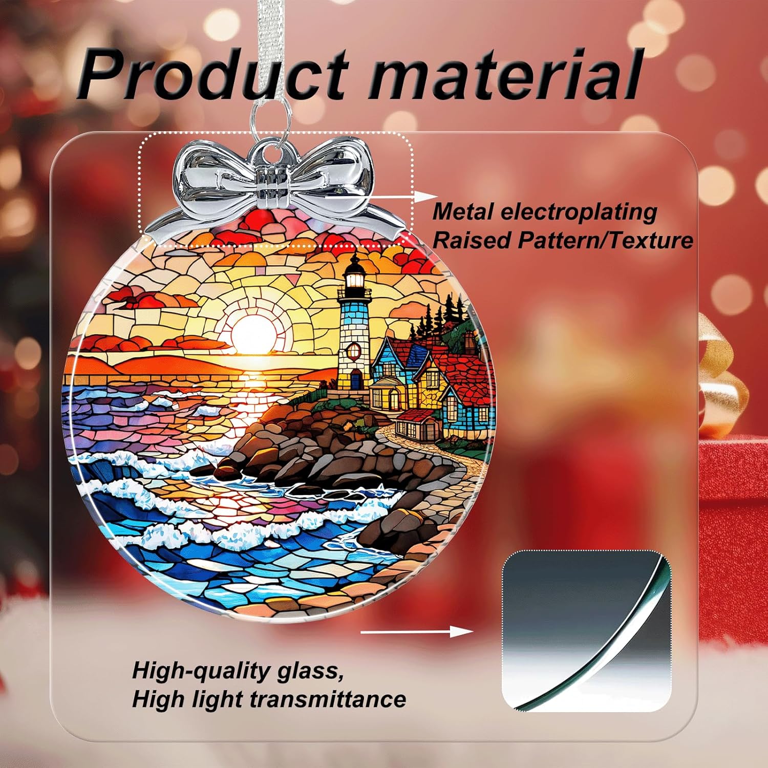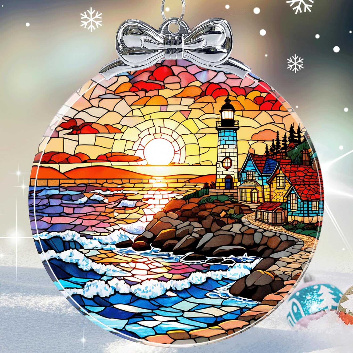Lighthouse Stained Glass Christmas Ornament - Hanging Ornaments for Christmas Tree Decorations -Holiday Keepsake Present Exchange Idea