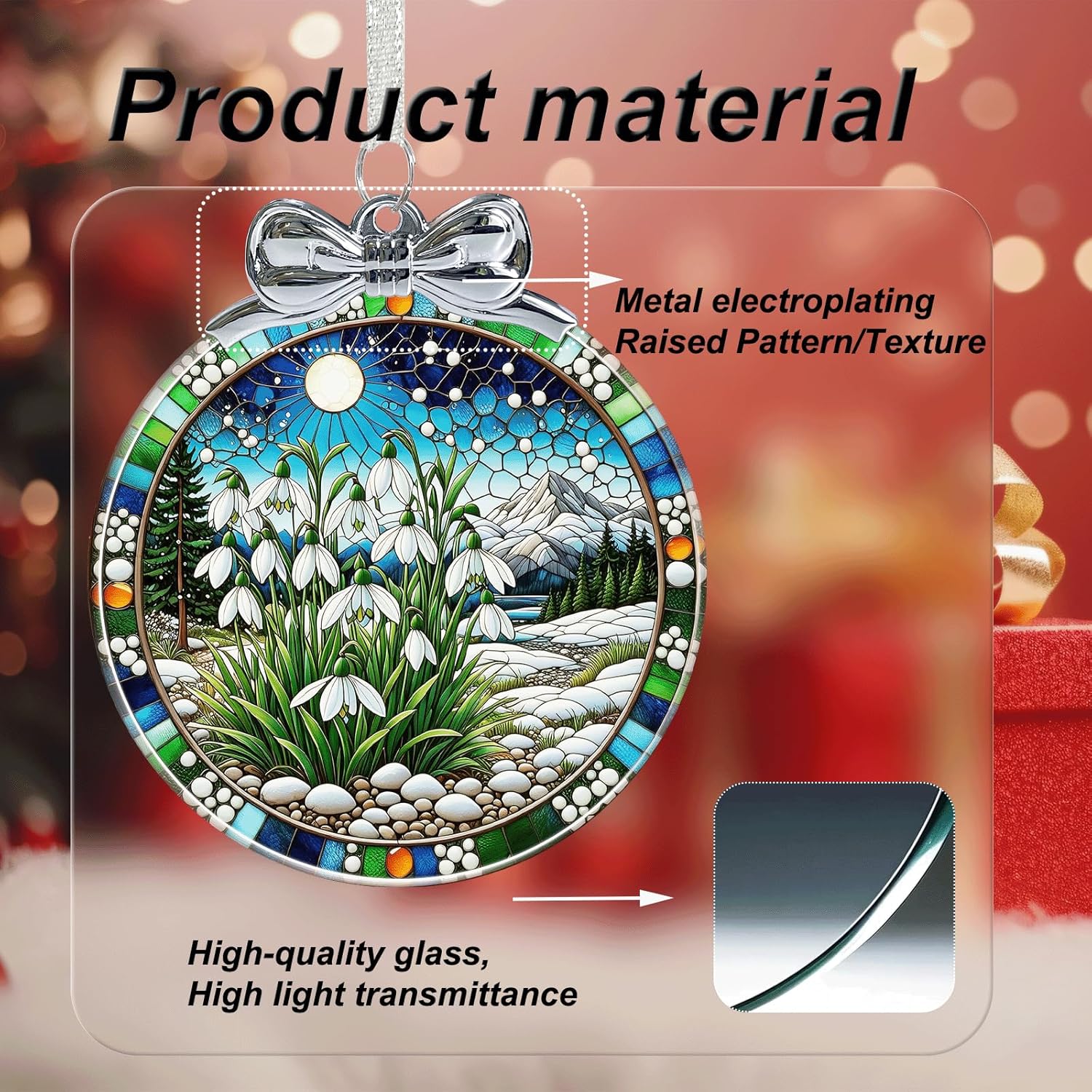 Snowdrop Stained Glass Christmas Ornament - Hanging Ornaments for Christmas Tree Decorations -Holiday Keepsake Present Exchange Idea