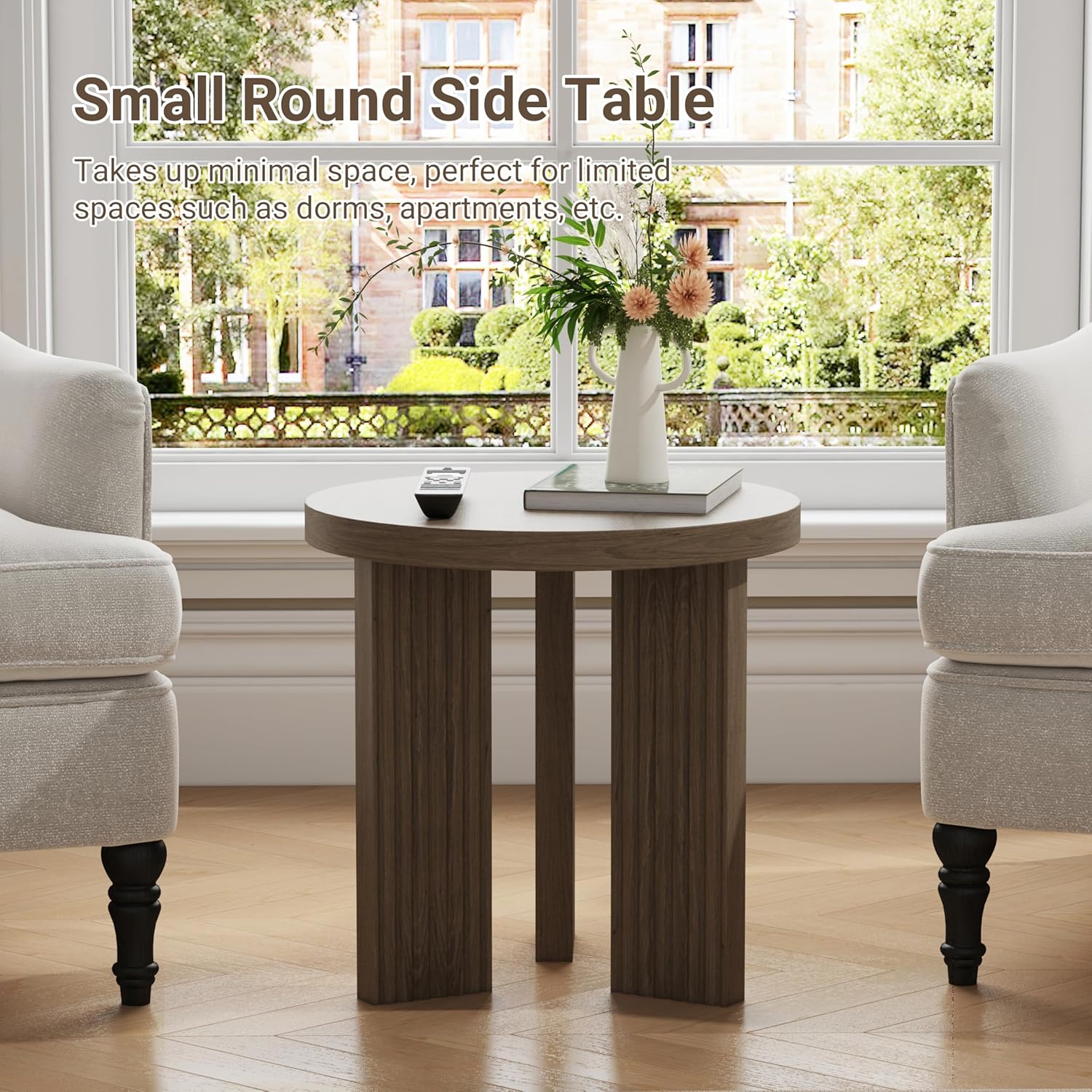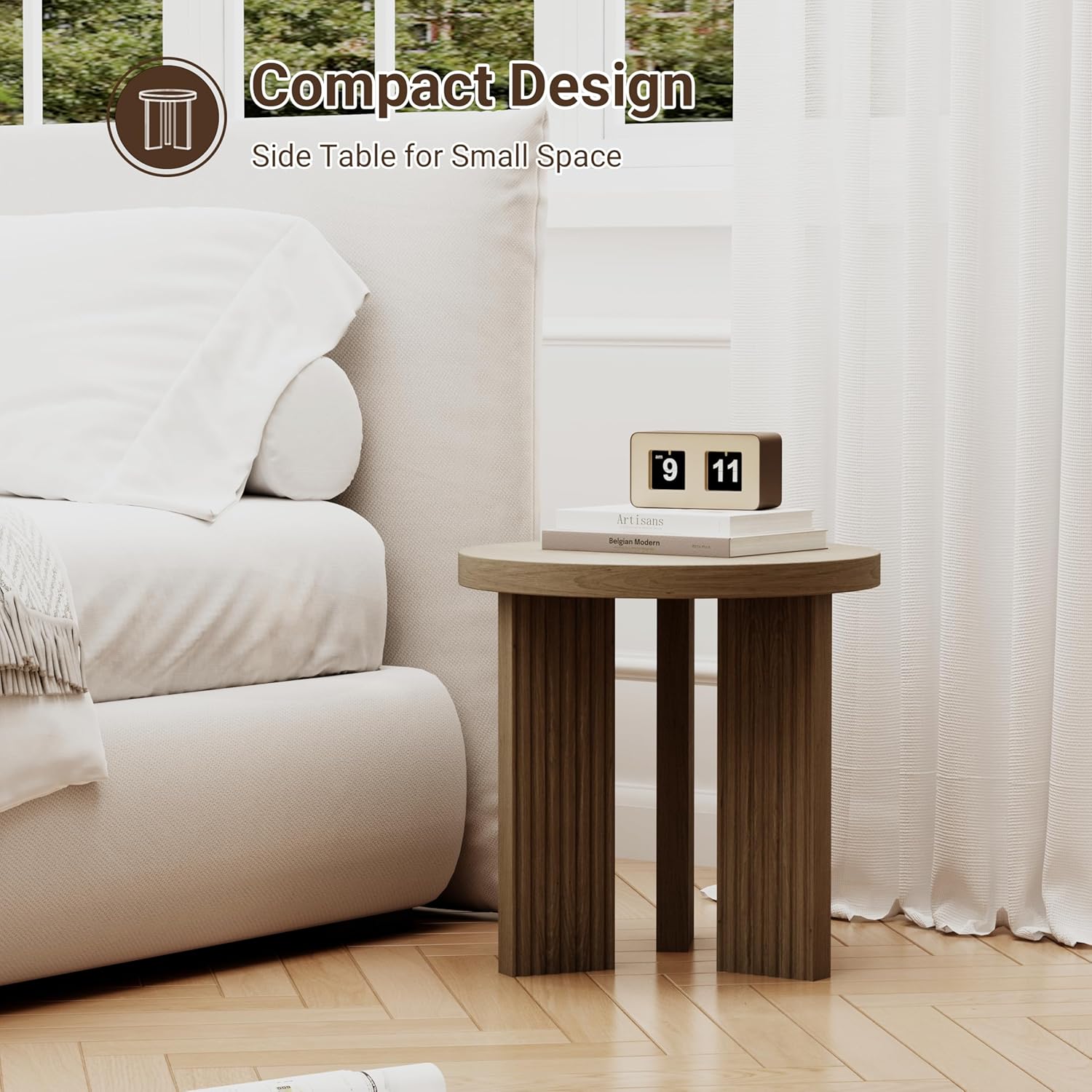 - Sturdy Wooden Side Table: Our classic small round side table boasts a high-quality wood grain veneer finish that imitates the natural beauty and texture of walnut. The waterproof and wear-resistant multi-step finish process protects the wood grain veneer while ensuring it remains looking sleek over time. The simple yet attractive design creates a classic look, whether minimalist or luxurious.