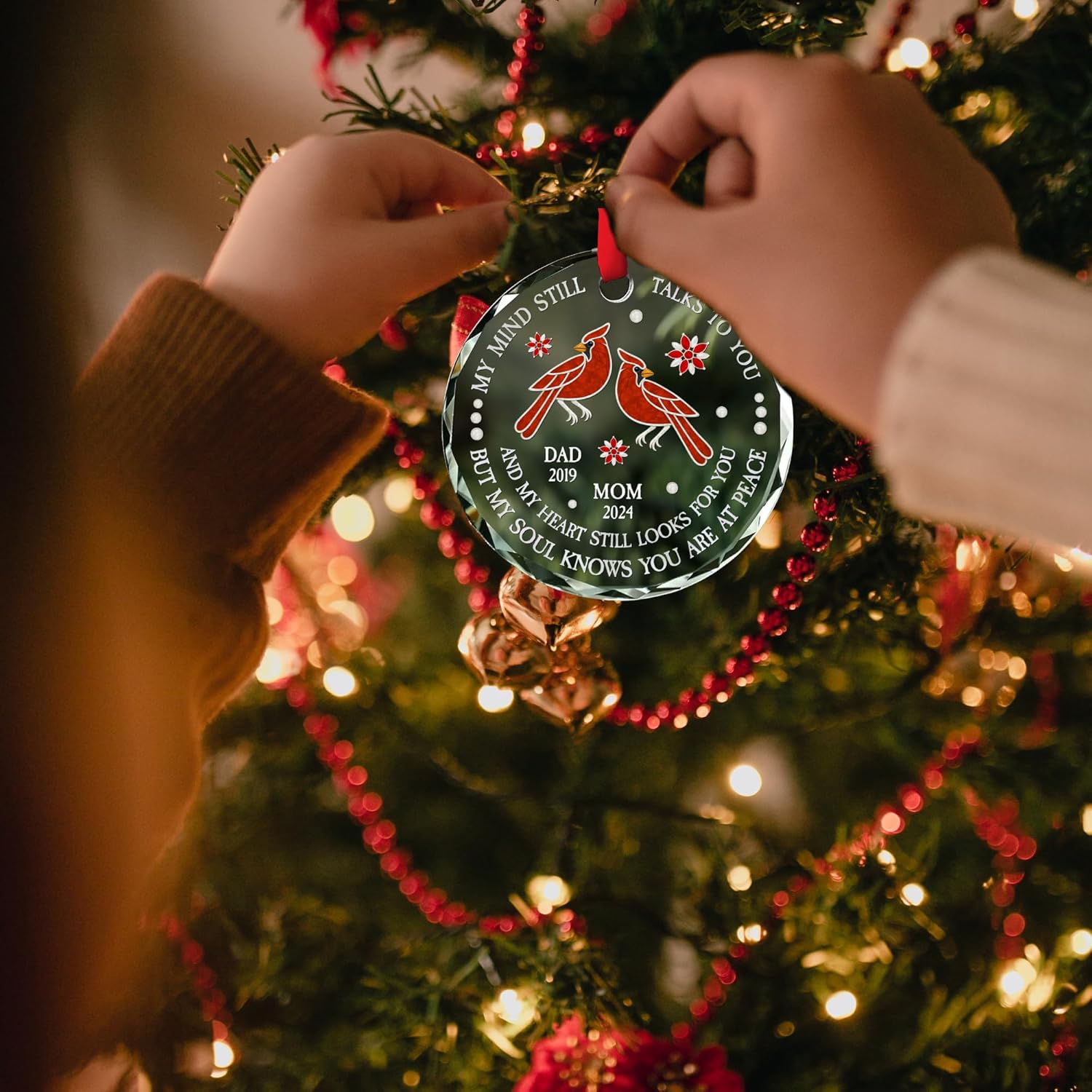 Personalized Memorial Christmas Ornament - My Mind Still Talks to You, Custom Name Remembrance Glass Ornament for Loss of Loved Ones, Sympathy Gifts for Deceased