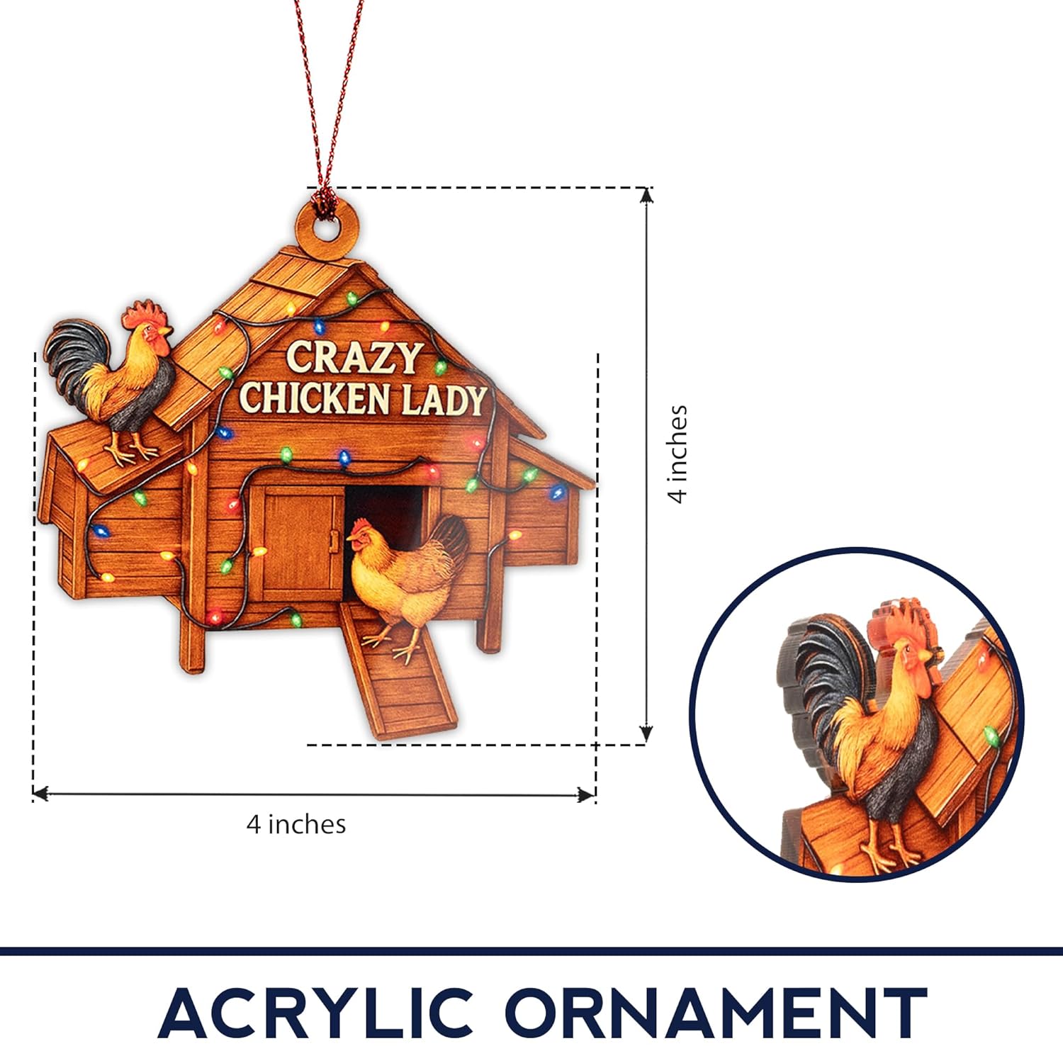 Crazy Chicken Lady Ornament – Chicken Lover Gifts | Farmhouse Christmas Ornament + Backyard Chicken Decor – Hen and Rooster Ornament – Funny Poultry Suncatcher Window Hanging – Car Hanging