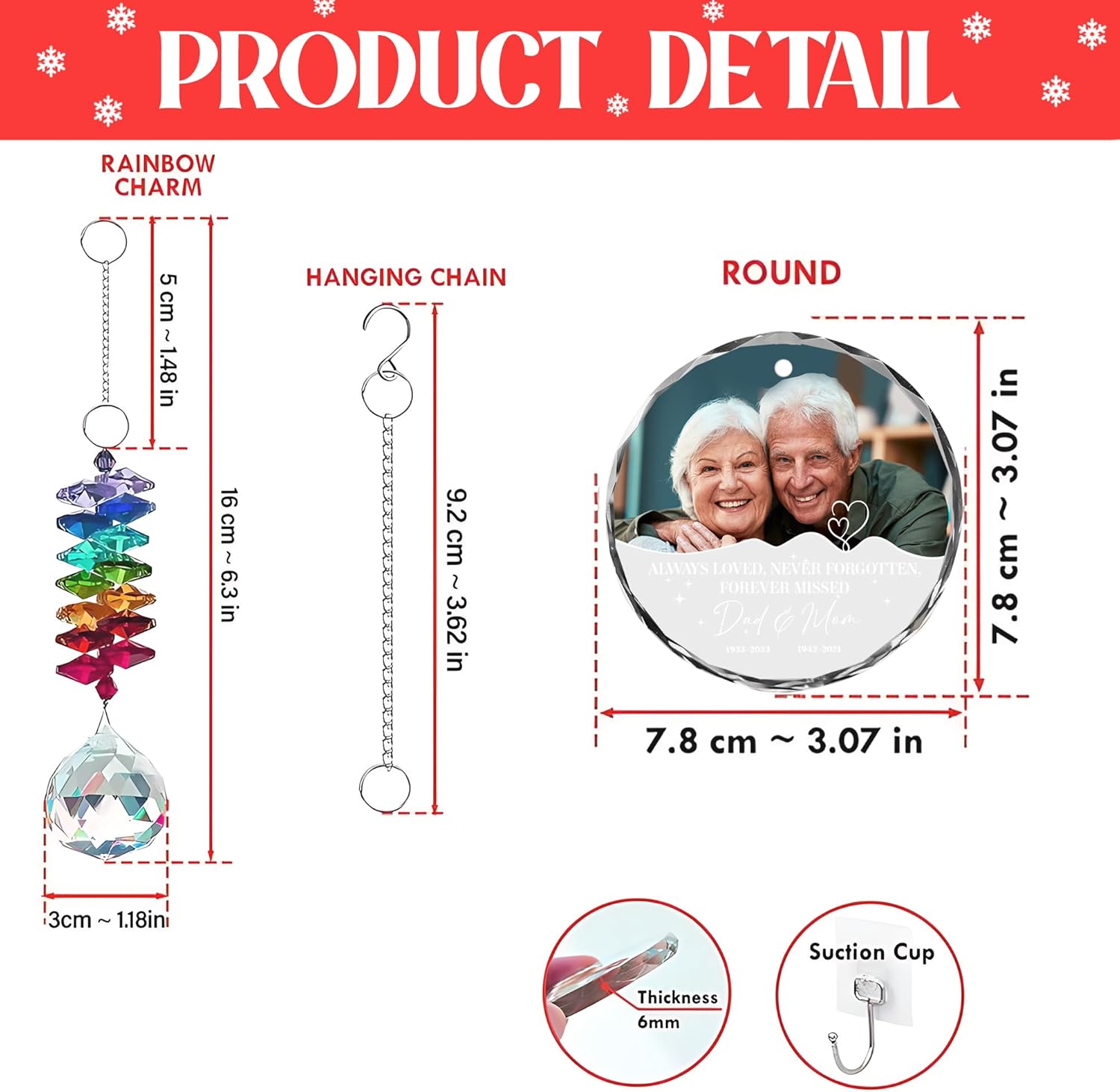 Personalized Memorial Ornament for Dad & Mom – Custom Photo Suncatcher with Names & Dates – Always Loved Never Forgotten – Loss of Parents Christmas Ornament – Remembrance Gift for Family