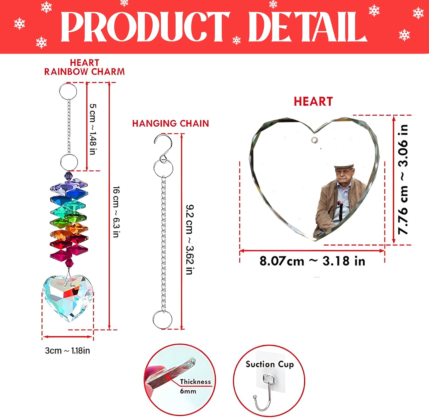 Personalized Heart-Shaped Memorial Ornament with Photo – Custom in Loving Memory Christmas Ornament for Dad – Rainbow Crystal Suncatcher with Loss of Father Quote – Remembrance Tree Decor