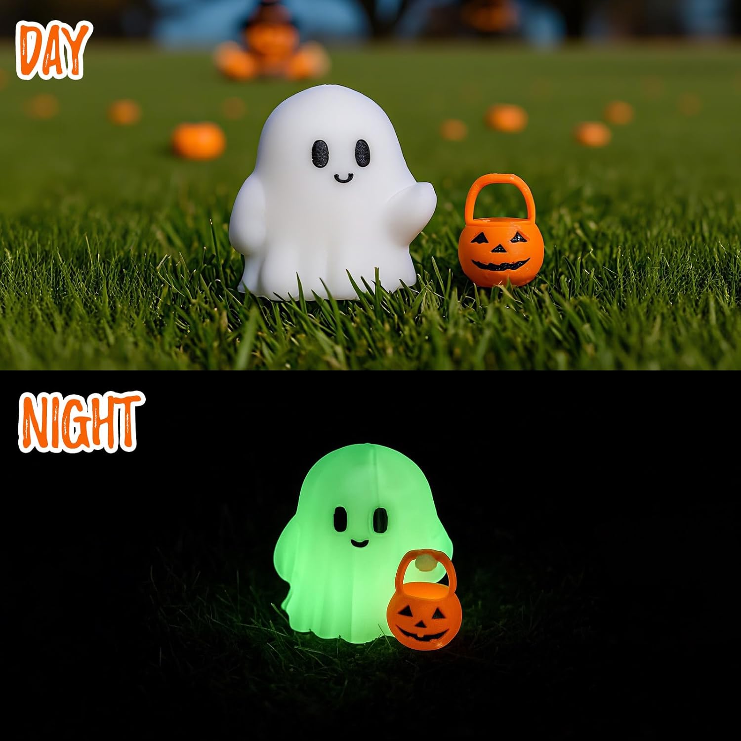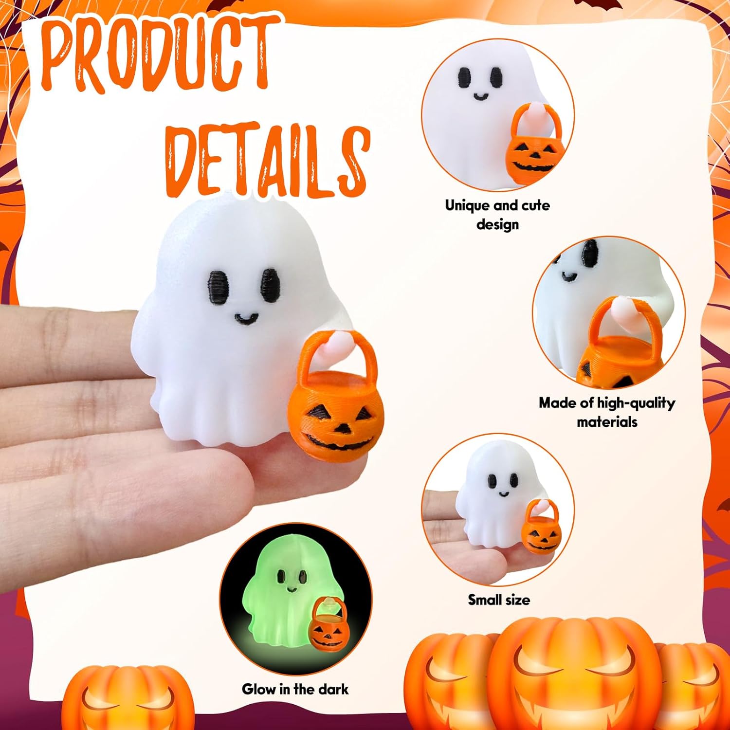 Halloween Ghost Figurine, Funny Glow in The Dark Spooky Resin Ghost with Pumpkin Basket Statue, Cute Decor for Halloween Decorations Indoor, Porch Indoor Home Decor Gifts