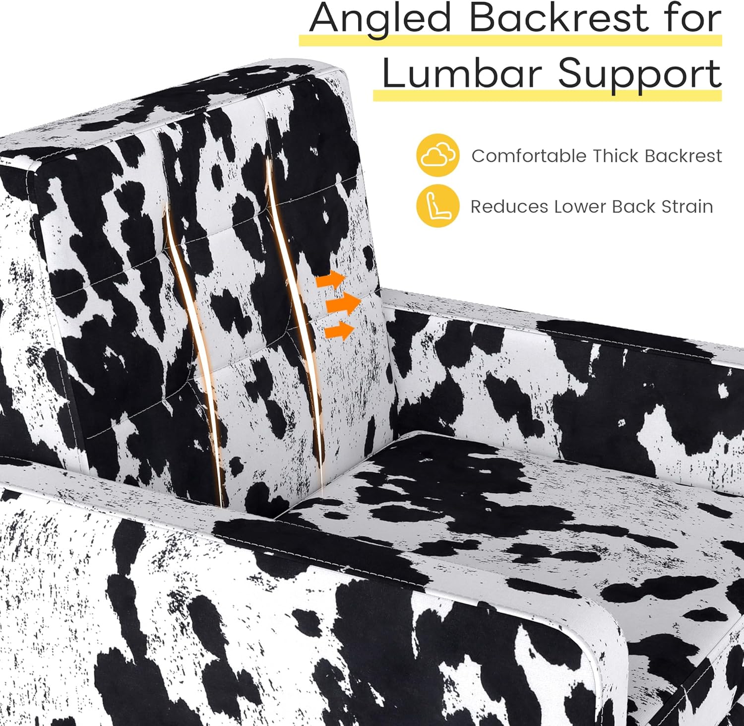 Kromax Mid-Century Modern Accent Chair for Living Room, 496 Lb. Weight Capacity, Dual Armrests, Comfy Extra Large Seat, Timeless Style Perfect for Reading & Relaxing, Cow Pattern